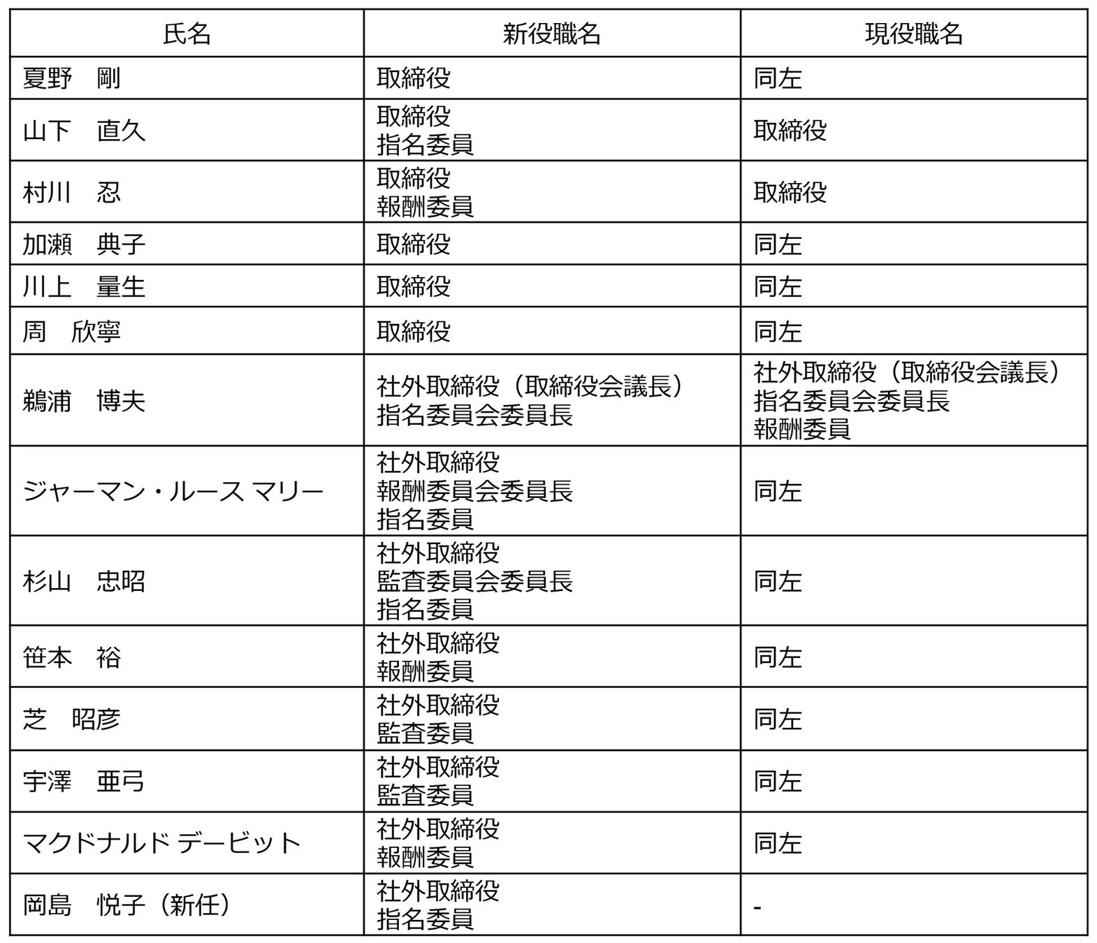 ※取締役会議長、各委員会の委員長および委員、代表執行役の選定を含む執行の役割については、第10期定時株主総会後の臨時取締役会にて正式決定いたします。