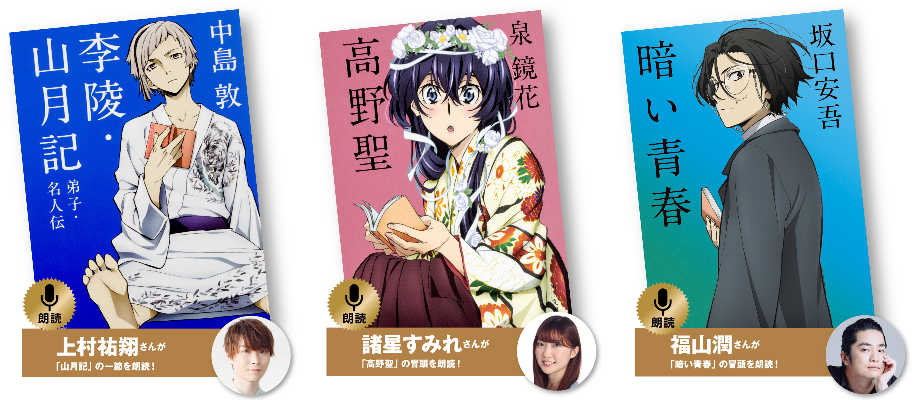 今年の夏は、アニメのメインキャラクターを演じている人気声優、上村祐翔さん、諸星すみれさん、福山潤さんの3 名がモデルになった文豪作品を朗読するというスペシャルな企画も!