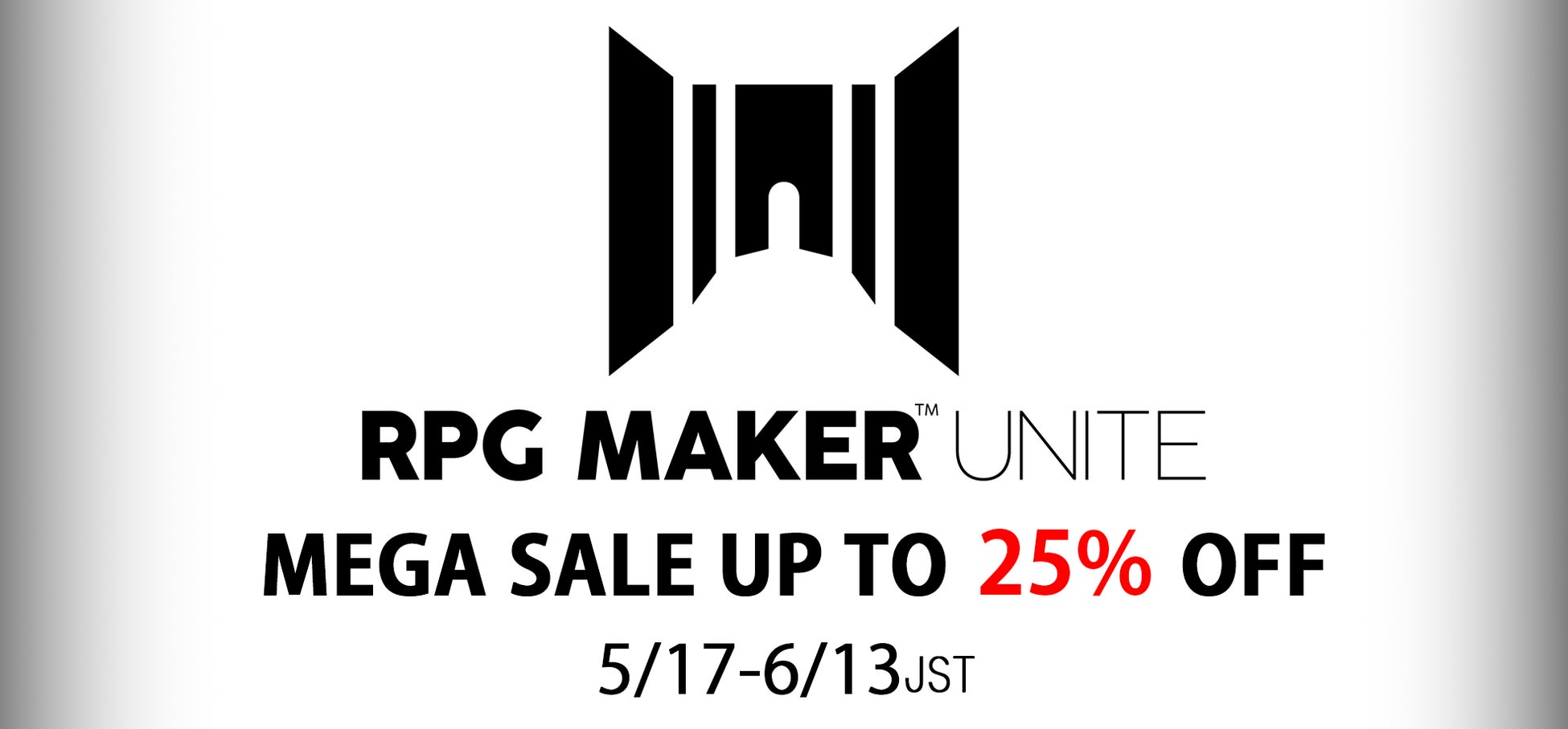 『RPG MAKER UNITE』Epic Games Store版は、2024年5月17日より1か月間、25%オフのメガセールを実施中! 過去最大の割引率となっておりますので、お見逃しなく!