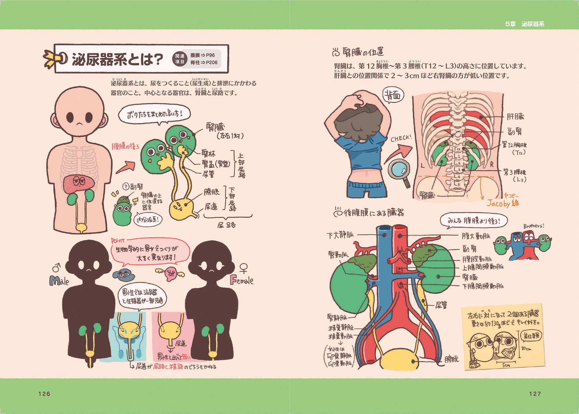 ポップなイラスト:臓器をキャラクター化。1000点以上の可愛いイラストで、体の仕組みを視覚的に学べる