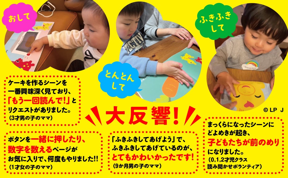 1歳から長く楽しめ、はじめての参加型絵本としてプレゼントにもぴったりの1冊です。