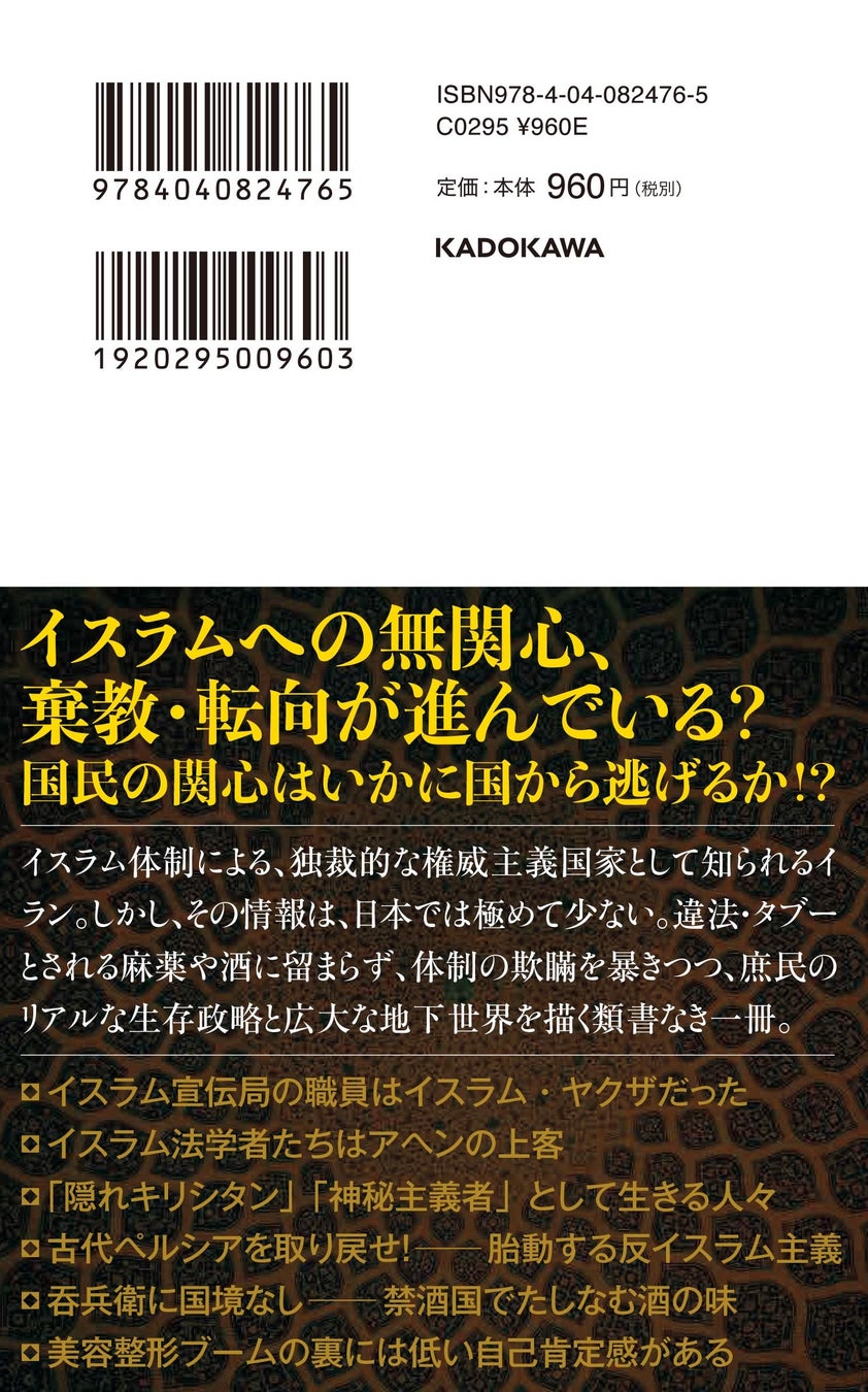 イスラム共和国支持者=敬虔なムスリムといえるのか? 棄教者は本当にいないのか? 反体制派の国家ビジョンとは? 長年イランの一般社会で暮らしてきた著者が、違法・タブーとされる麻薬や酒をはじめ、イスラム体制の欺瞞を暴きつつ、庶民の生存戦略と広大な地下世界を描いた本書は、類書なき一冊として反響を呼び、発売早々の重版にいたった。