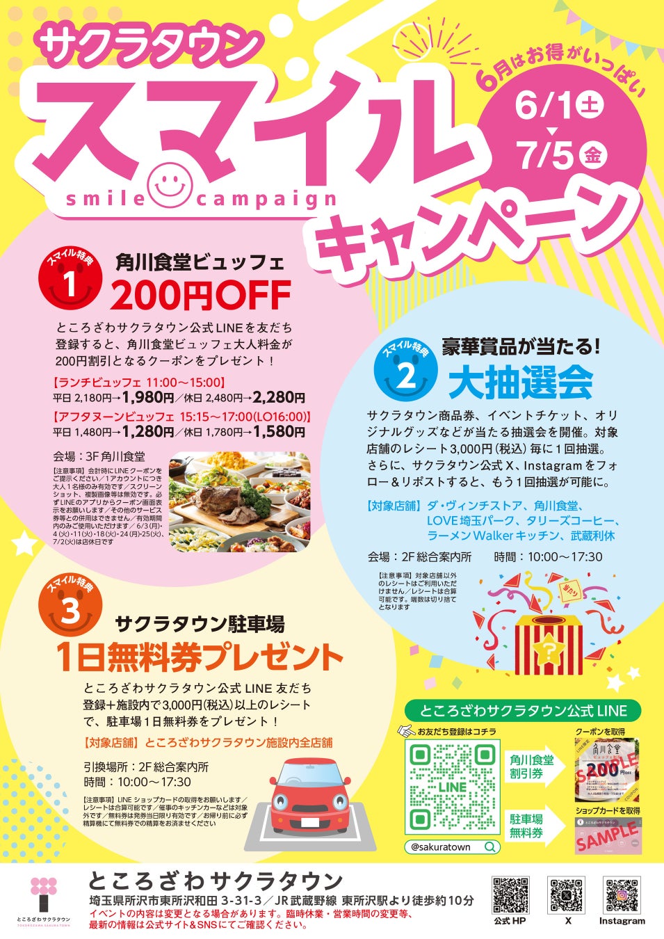 お得に利用して、豪華景品を当てよう!ところざわサクラタウン「スマイルキャンペーン」を6月1日(土)より開催!