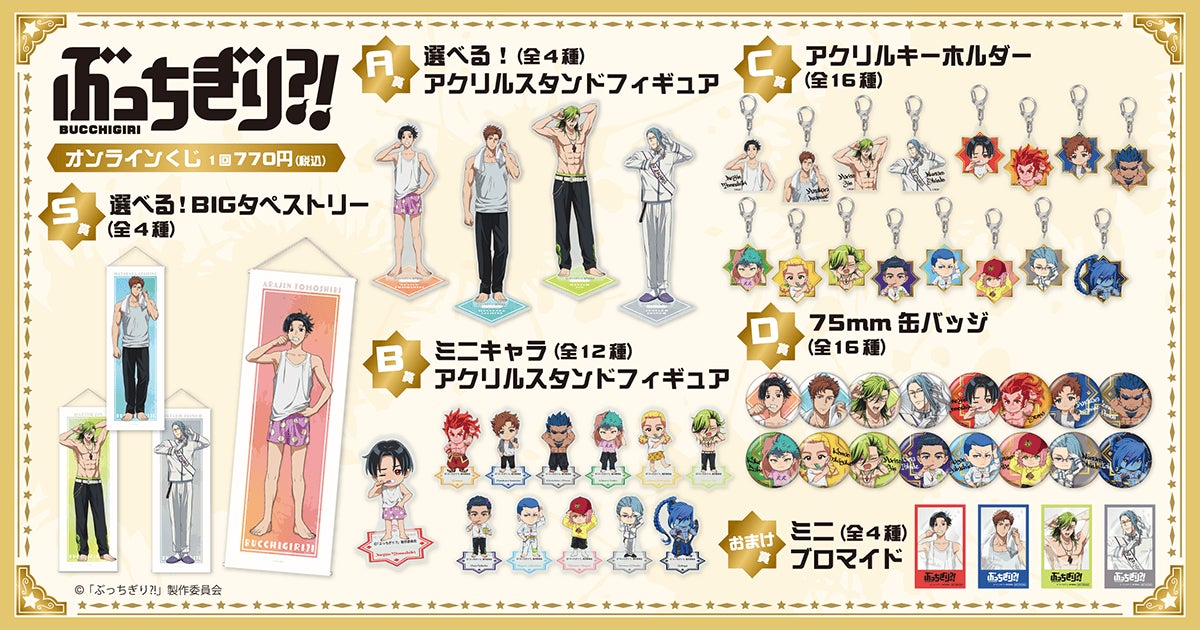 <「ぶっちぎり?!」オンラインくじ 概要> 販売期間:2024年9月5日(木)12:00~2024年10月3日(木)11:59 販売価格:1回 770円(税込)※別途発送手数料が掛かります。 |