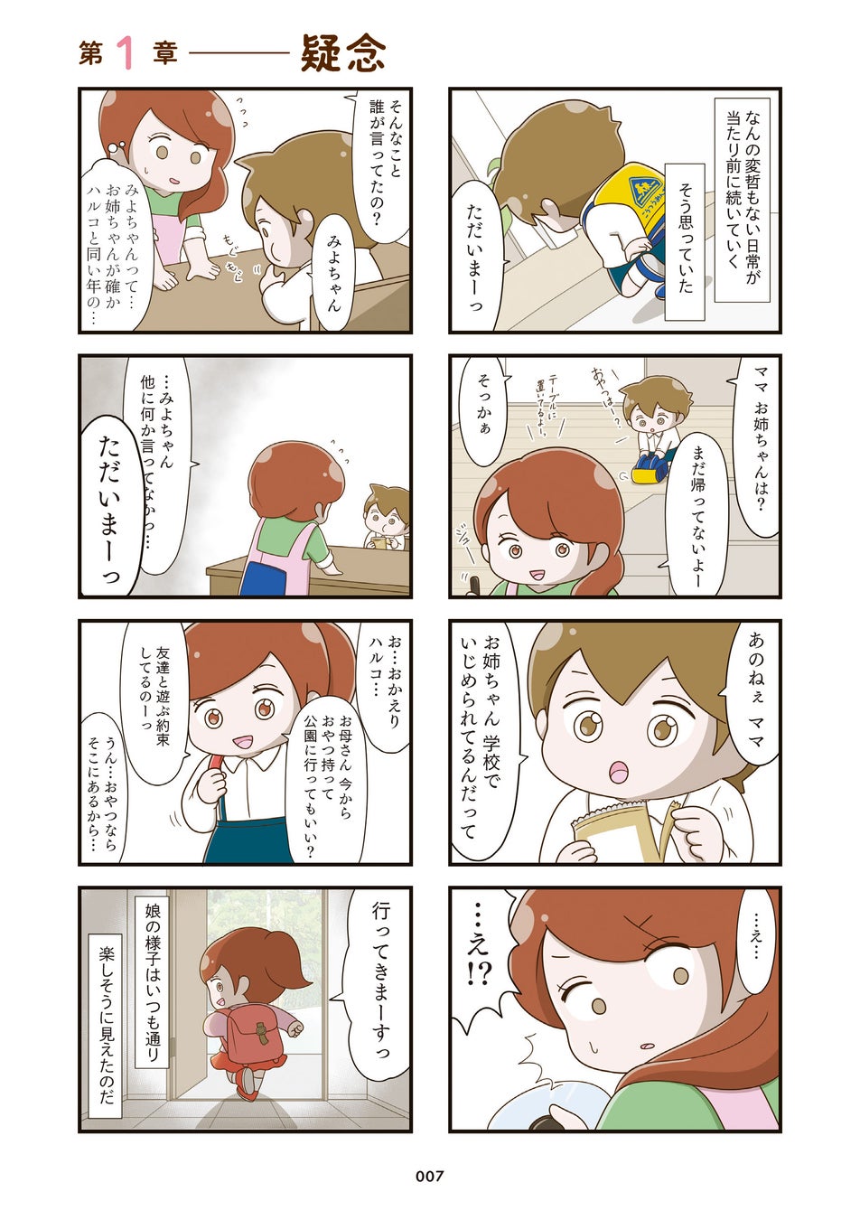 娘は4年間いじめられるために学校に通っていました。ひとりでいじめに耐え、隠し続けた娘。いじめの存在を否定する我が子からは話を聞けず、なかったことにする担任は当てにならない。いじめの本当の加害者は、被害者は誰? 家族が希望を取り戻すまでを描いた、実話をもとにしたコミックエッセイです。
