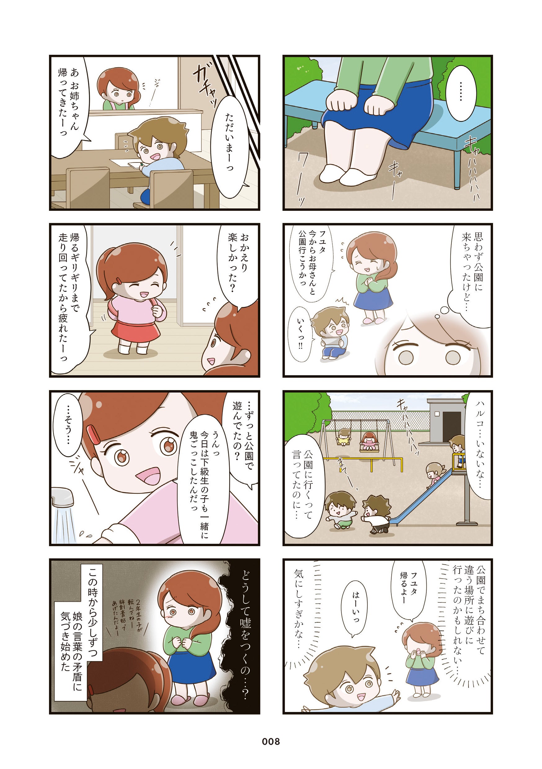 娘の様子はおかしなところもなく、いつも通りに思えたが、次第に娘の言葉の矛盾に気づくようになる。