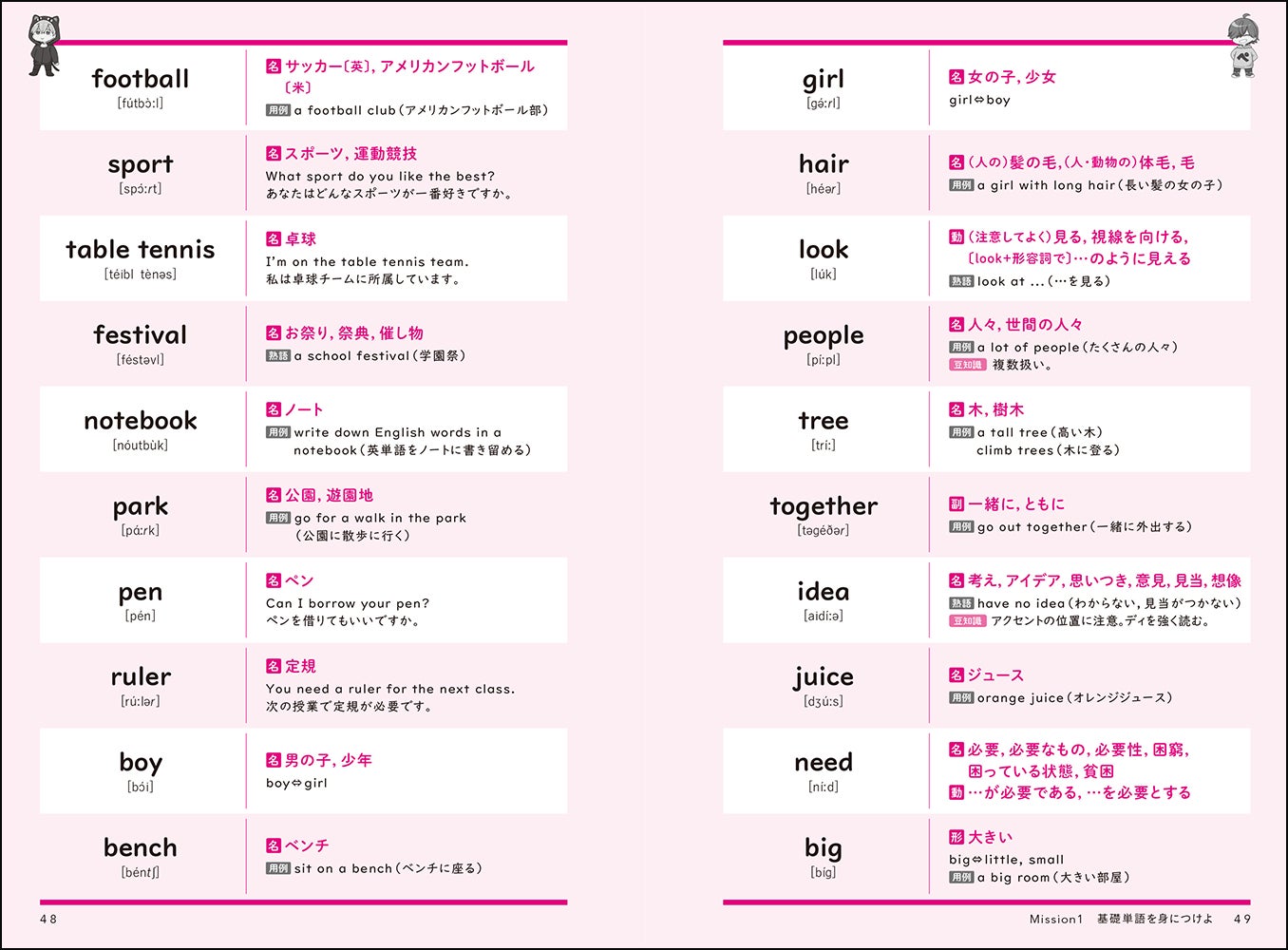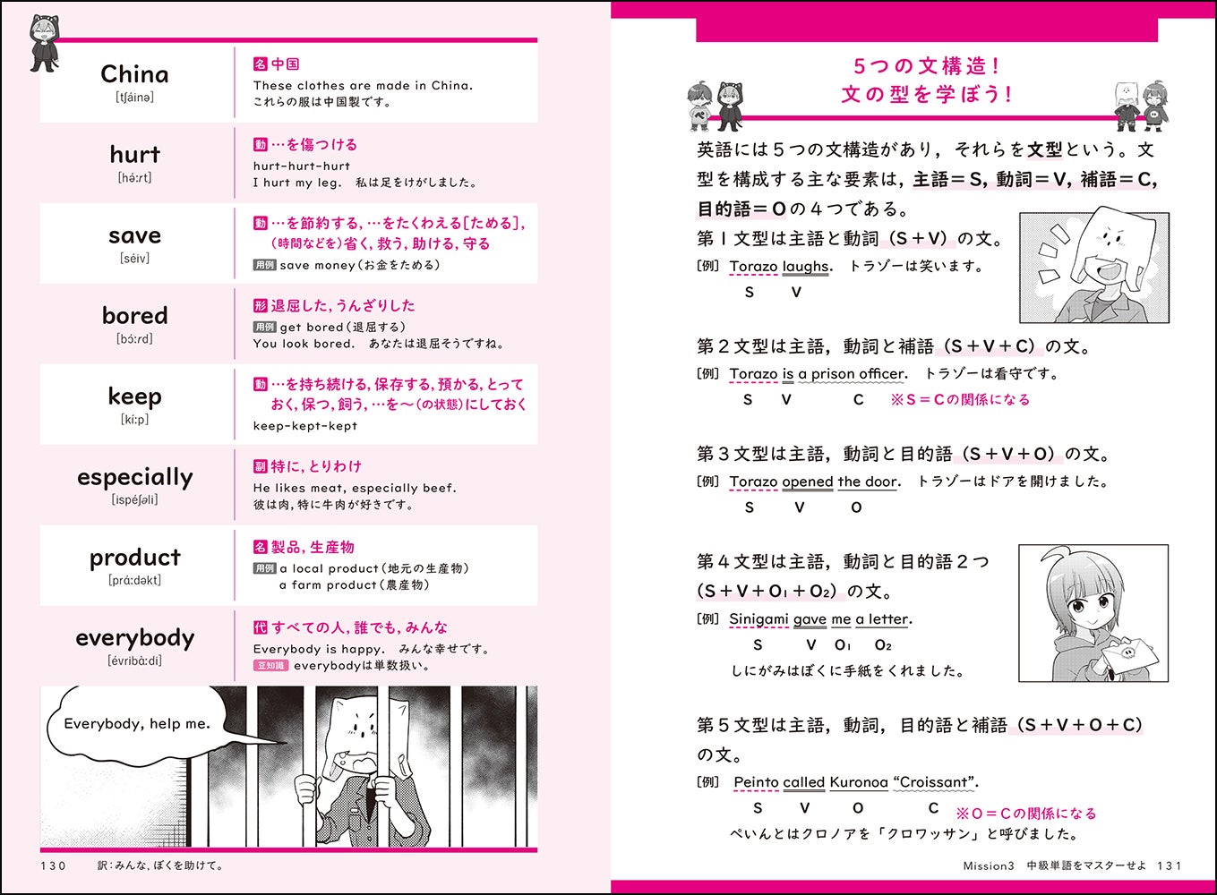 冒頭カラー漫画やイラスト、基礎文法解説、コラムも充実。超楽しく英単語&熟語が1800以上学べる英単語帳で、