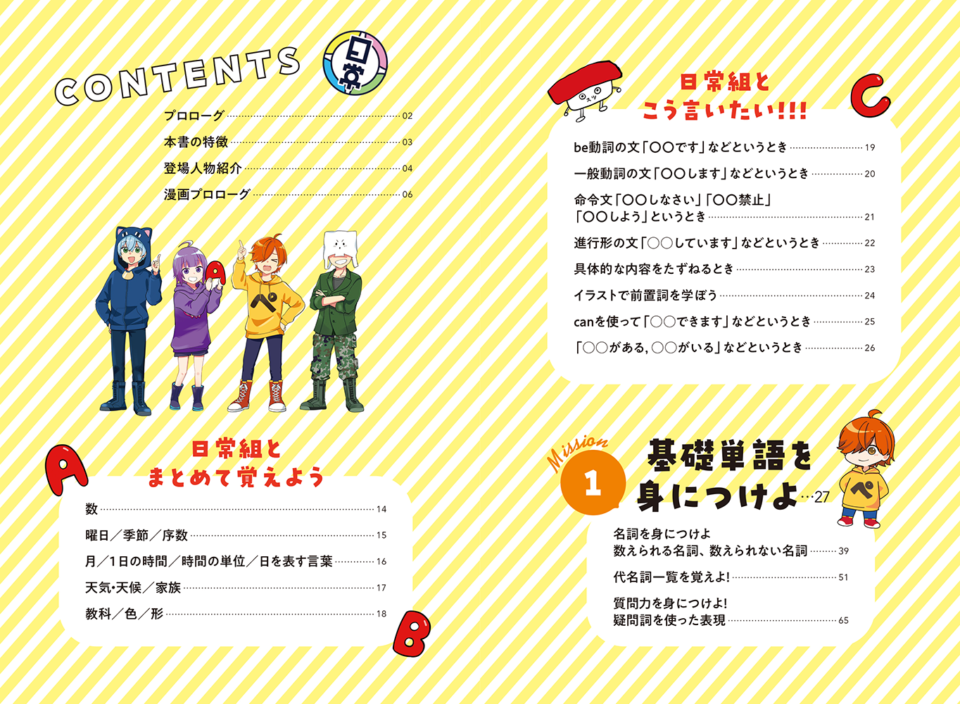 日常組にちなんだ例文などを通して、楽しくポイントを確認!
