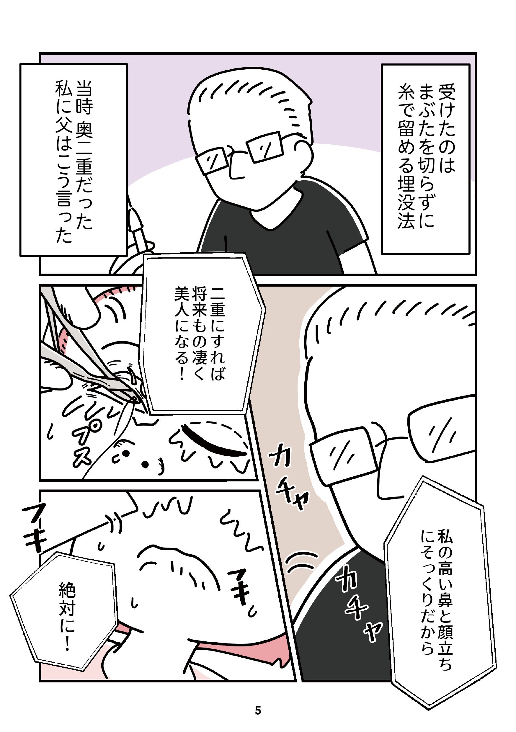 初めて整形したのは14歳の時。美容外科医の父親に二重瞼(埋没法)にしてもらった。
