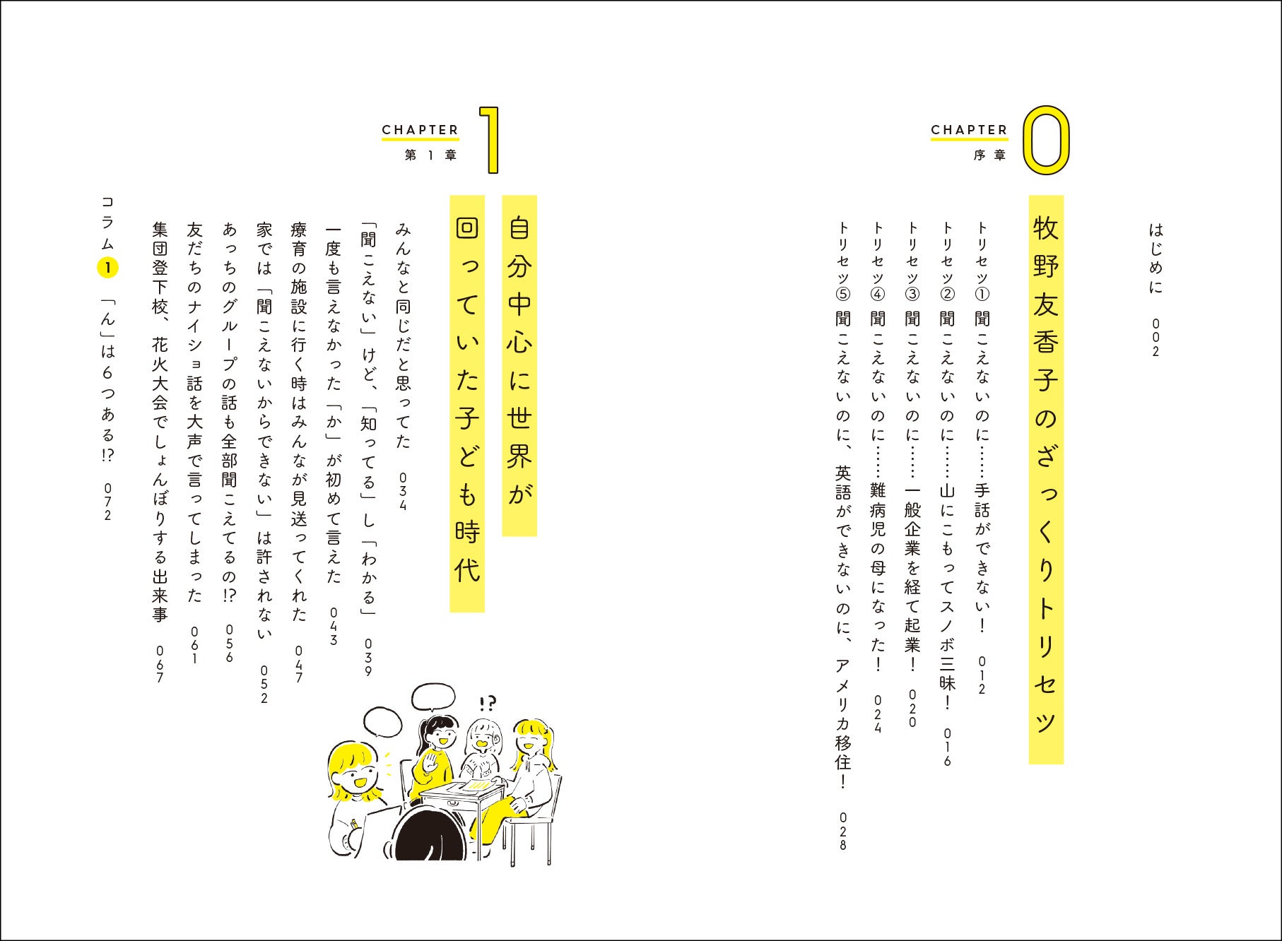 著者は生まれつき耳が聞こえない中、「幼馴染と一緒に学校に通いたい!」という理由からろう学校には行かず、読唇術を頼りに幼稚園、小・中学校と地元の学校へ通います。