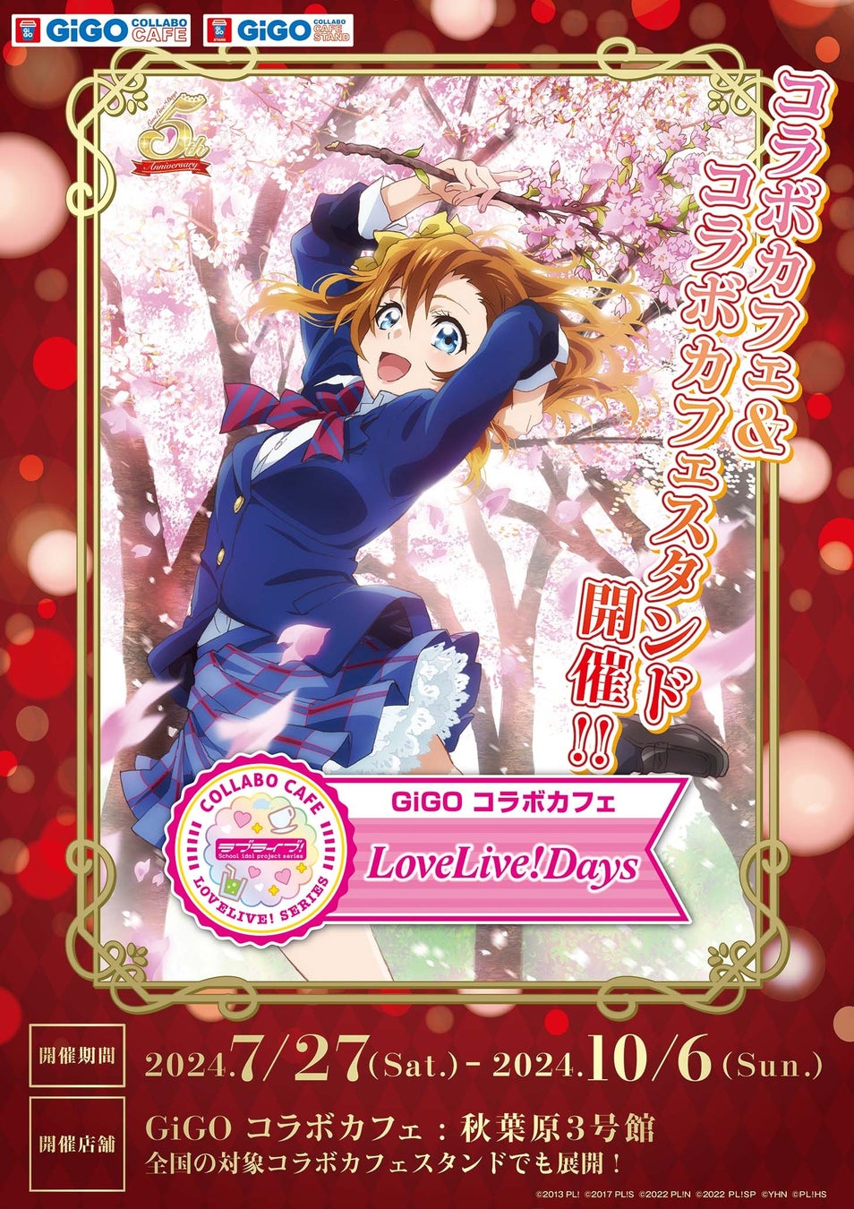 【その5】GiGOコラボカフェ「LoveLive!Days」開催! LoveLive!Days 5周年記念コラボカフェ&コラボカフェスタンドが7月27日(土)よりスタート! オリジナルメニューが楽しめる他、GiGOコラボカフェ限定のオリジナルグッズも入手可能。また、全国の対象コラボカフェスタンドでも展開予定です。 |
