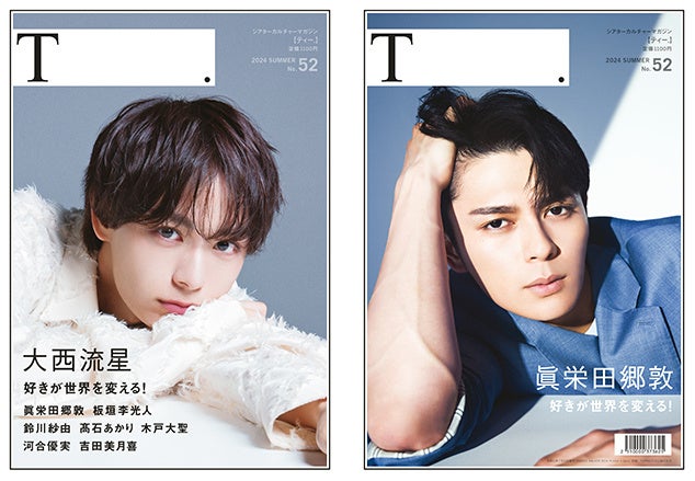 今号のT. [ティー]は、『恋を知らない僕たちは』(8月23日公開)映画初主演となるなにわ男子の大西流星と、実写映画『ブルーピリオド』(8月9日公開)の主演を演じる眞栄田郷敦が表紙、裏表紙を飾ります。