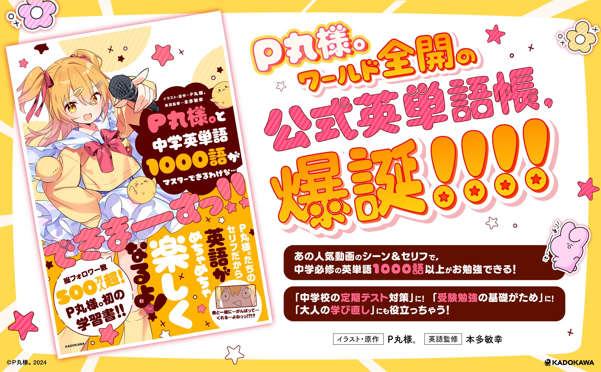 P丸様。初の公式英単語帳『P丸様。と中学英単語1000語がマスターできるわけな…できまーーーすっ!!』が2024年7月19日(金)に発売! 限定特典も多数!