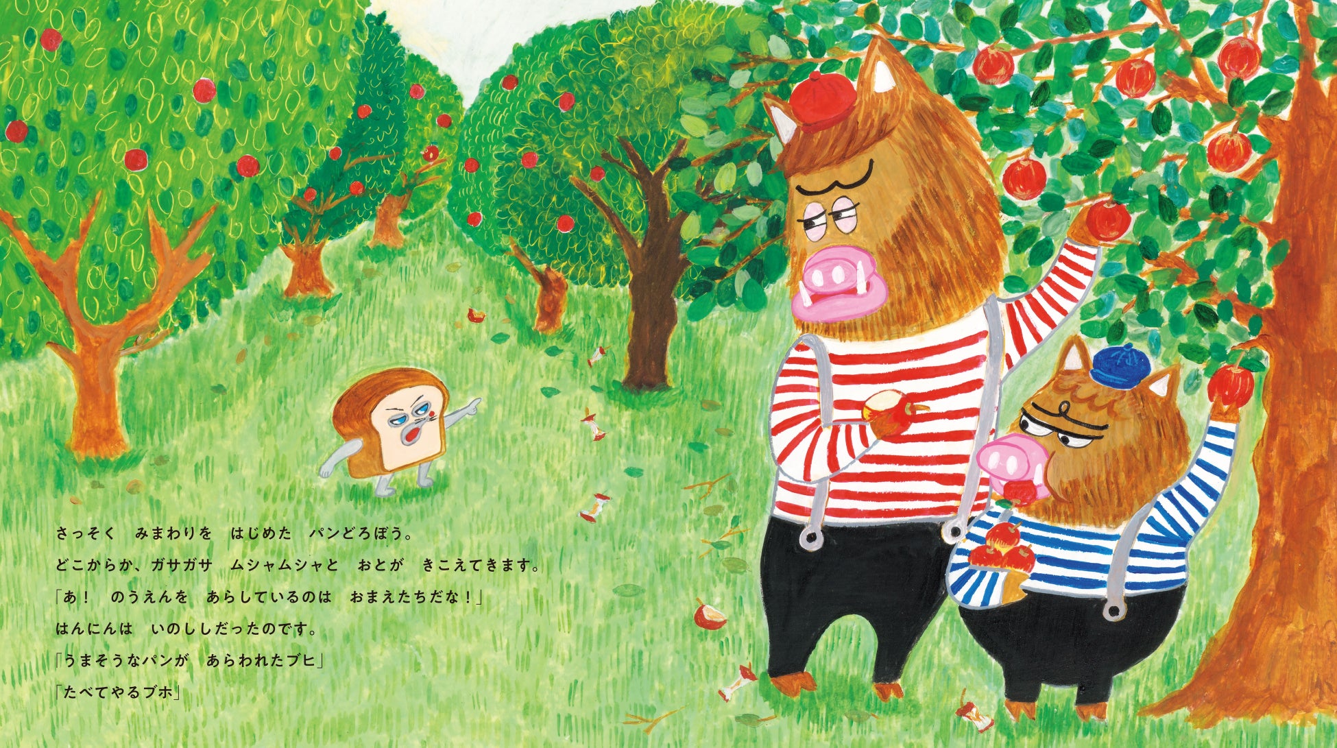 「うまそうなパンが あらわれたブヒ」「たべてやるブホ」