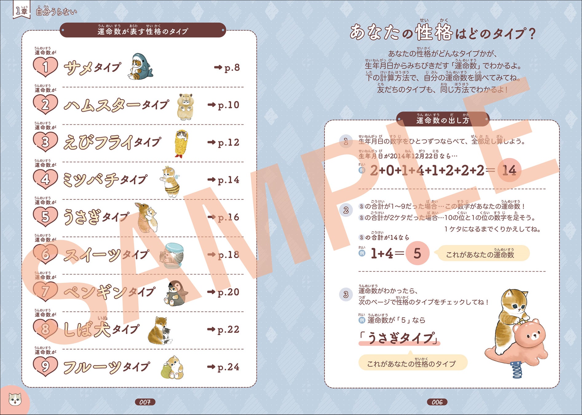 運命数・星座占いなど定番の占いから、肉球占い・書物占いなどこの本だけのオリジナル占いまで、さまざまな占いが楽しめます。
