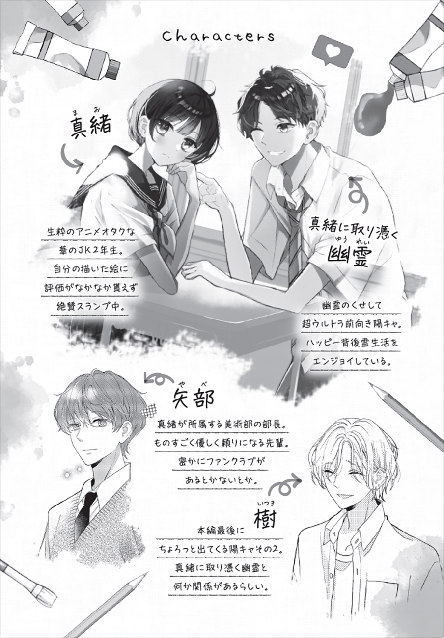美術部の真緒(まお)は、オタク系女子高生。イラストをSNS投稿するも、反応の少なさにがっかり。そんな中、バス停で話しかけてきたのは、キラキラ系男子高生(幽霊)! しかも自分のことが好きらしい!? くすっと笑えて、ちょっぴり切ない、ひと夏の恋物語。