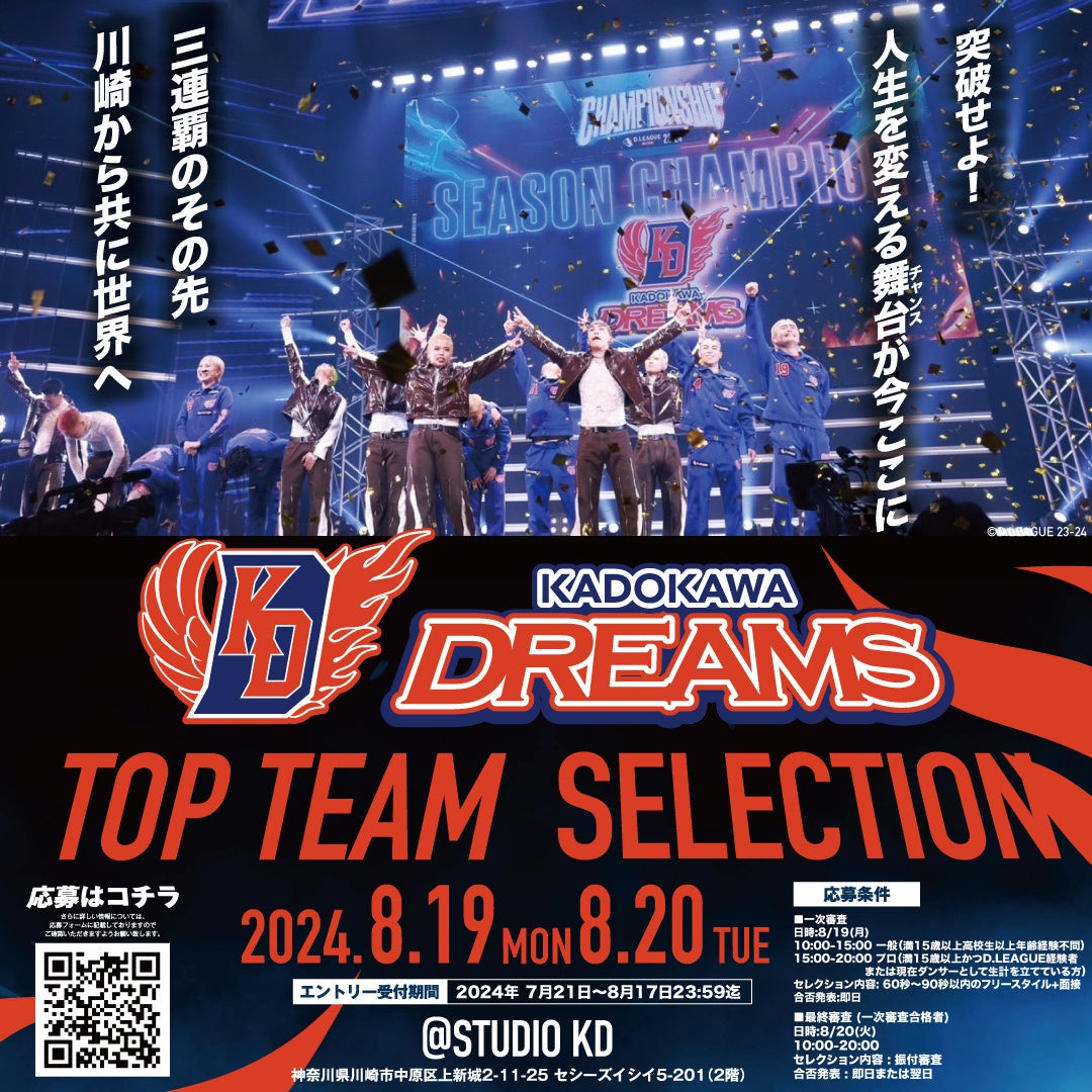 日本発のプロダンスリーグ・D.LEAGUEで2連覇中のKADOKAWA DREAMSが、来シーズンに向けて新メンバーセレクションを8/19(1次審査)に開催!現在エントリー受付中だ。