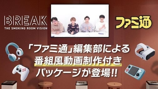 ゲームメディア「ファミ通」、オフィス喫煙所サイネージメディア「BREAK」と協力した番組風動画制作付きパッケージプランをリリース
