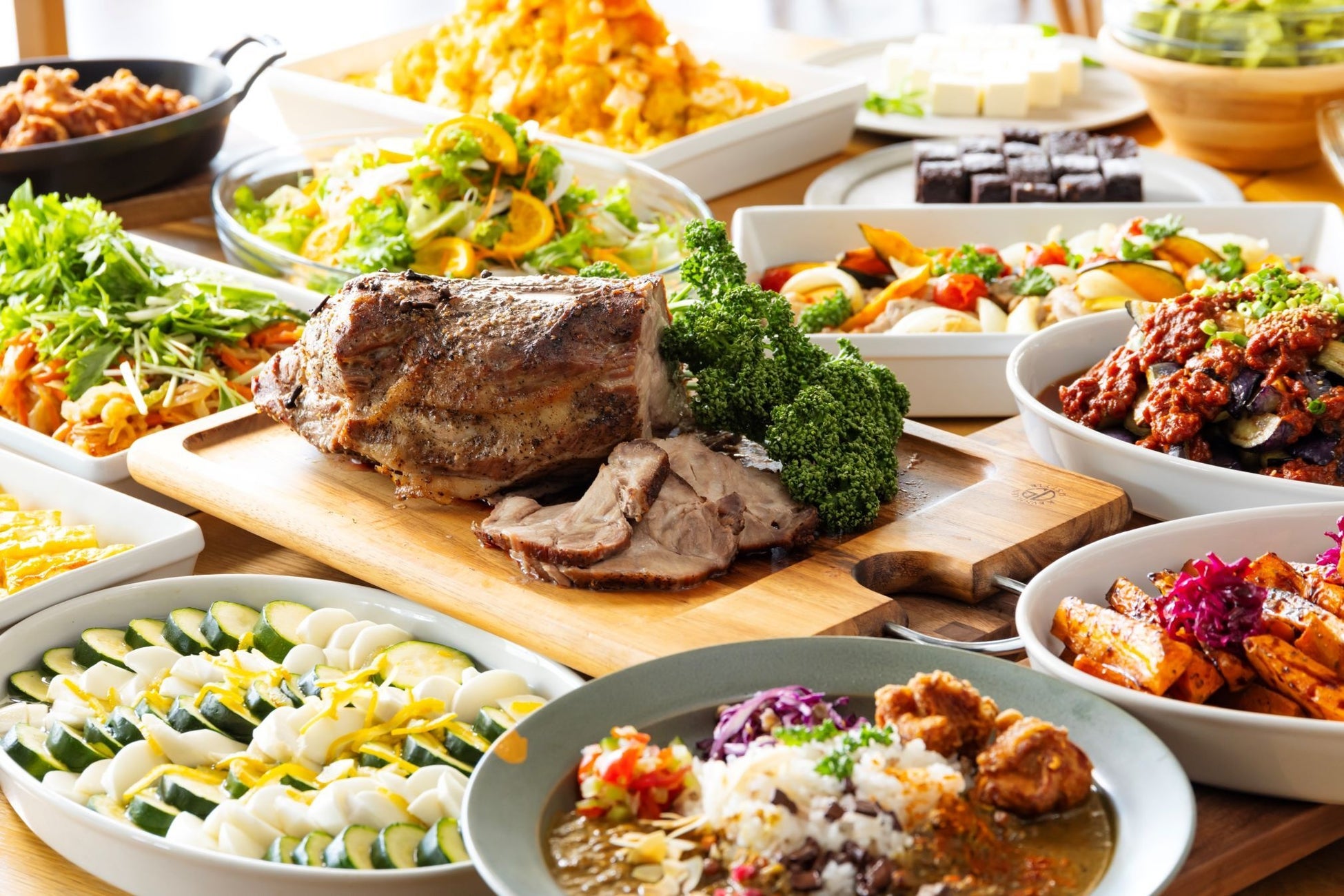 ■内容 :デリ、ロースト肉、カスタマイズ・カレーを中心とした最大60品のビュッフェ