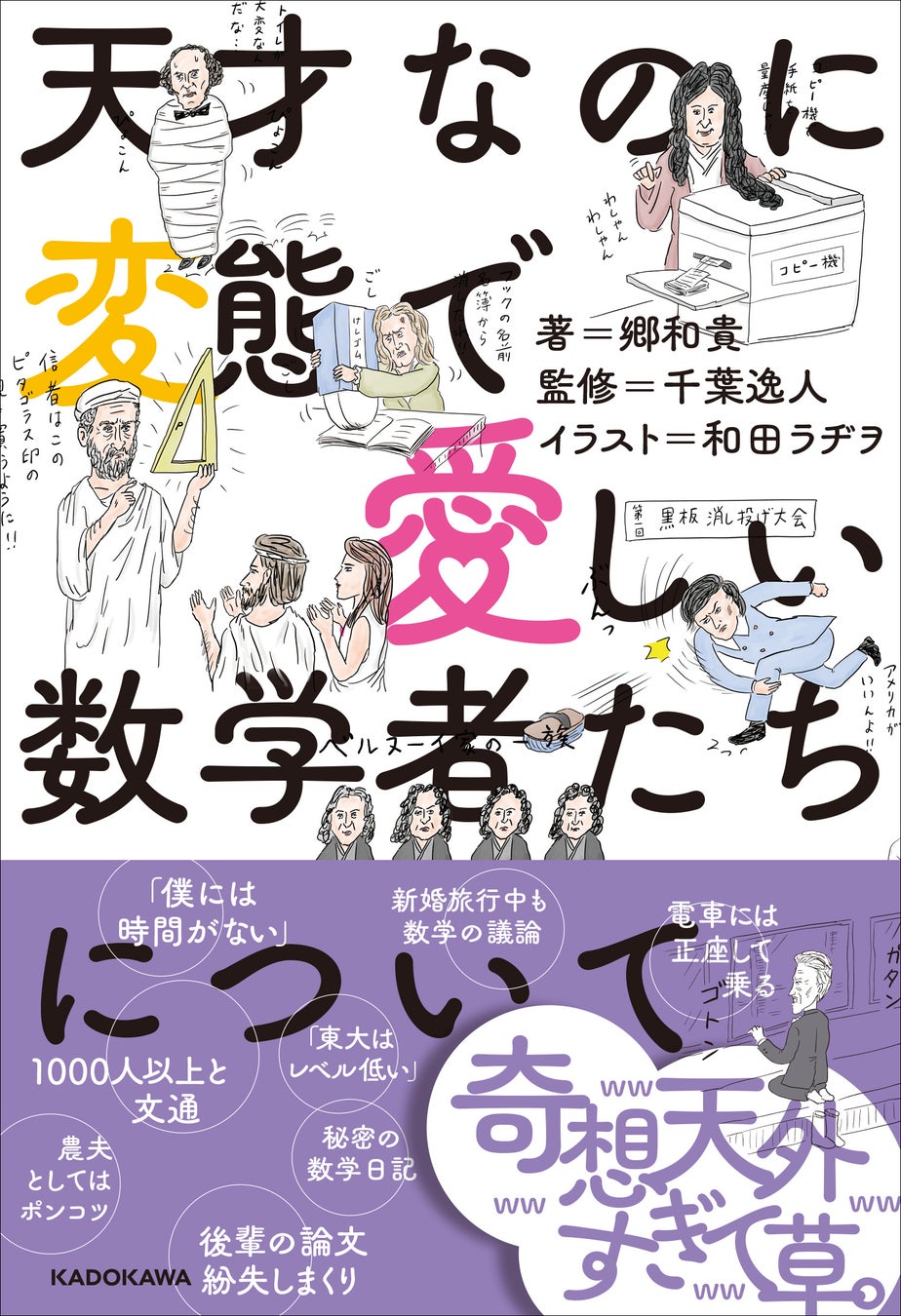 1,000人の人と文通していたり、すっかり「熱」に取りつかれて全身包帯ぐるぐる巻きで過ごしたり、電車に正座して乗ったり、新婚旅行中も熱心に数学の議論をしていたり……。とにかくクセが強すぎる偉人たち。ときにハチャメチャで奇想天外な行動をとる彼らですが、なぜか憎めず、愛しく感じてしまいます。
