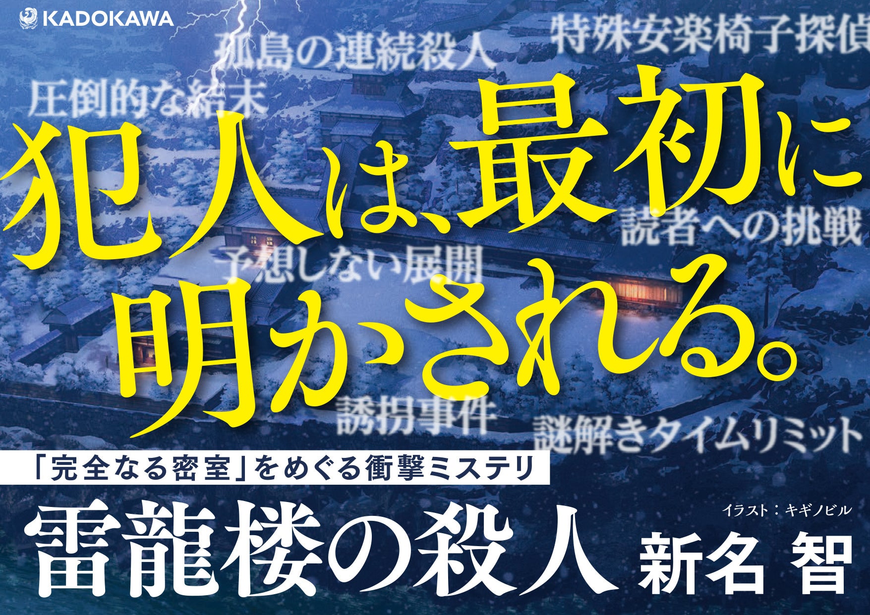 株式会社KADOKAWA(本社:東京都千代田区)は、新名 智氏の最新長編小説『雷龍楼の殺人(らいりゅうろうのさつじん)』を2024年8月2日(金)に発売しました。