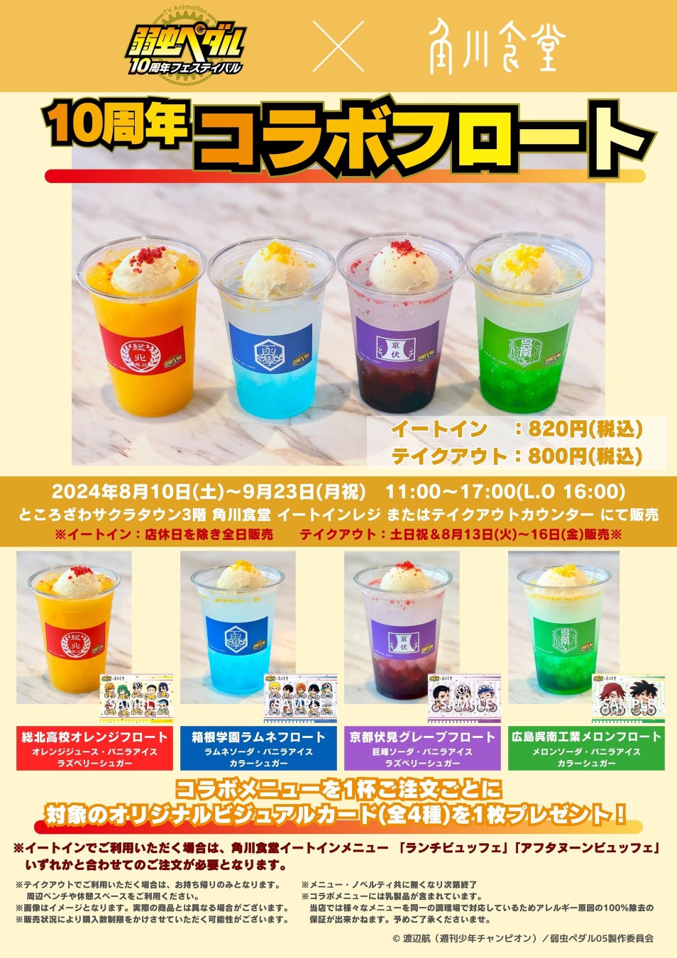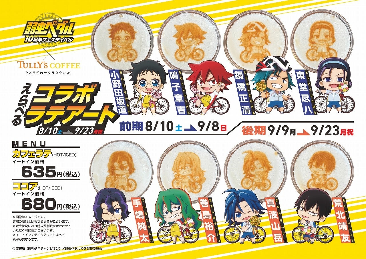 TVアニメ「弱虫ペダル」10周年フェスティバルを祝して、展覧会以外にもところざわサクラタウンのテナントとコラボを実施!ここだけのコラボドリンクを、ぜひご堪能ください!