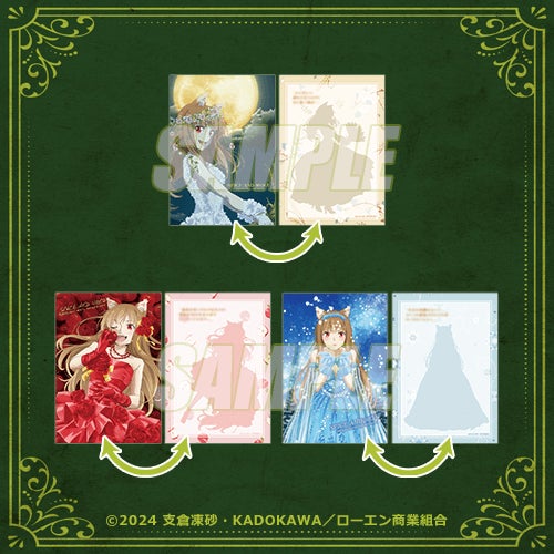 <「狼と香辛料 MERCHANT MEETS THE WISE WOLF」ホロくじ 概要> 販売期間:2024年8月15日(木)12:00~2024年9月12日(木)11:59 販売価格:1回 770円(税込)※別途発送手数料が掛かります。 |