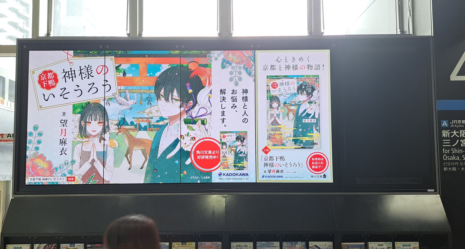 株式会社KADOKAWA(本社:東京都千代田区、取締役 代表執行役社長 CEO:夏野剛)は、『京都下鴨 神様のいそうろう』(望月麻衣・著)を2024年8月23日(金)に角川文庫より発売いたしました。また、発売を記念して烏丸御池のバス停に広告と、JR京都駅にビジョン広告を掲出いたします。