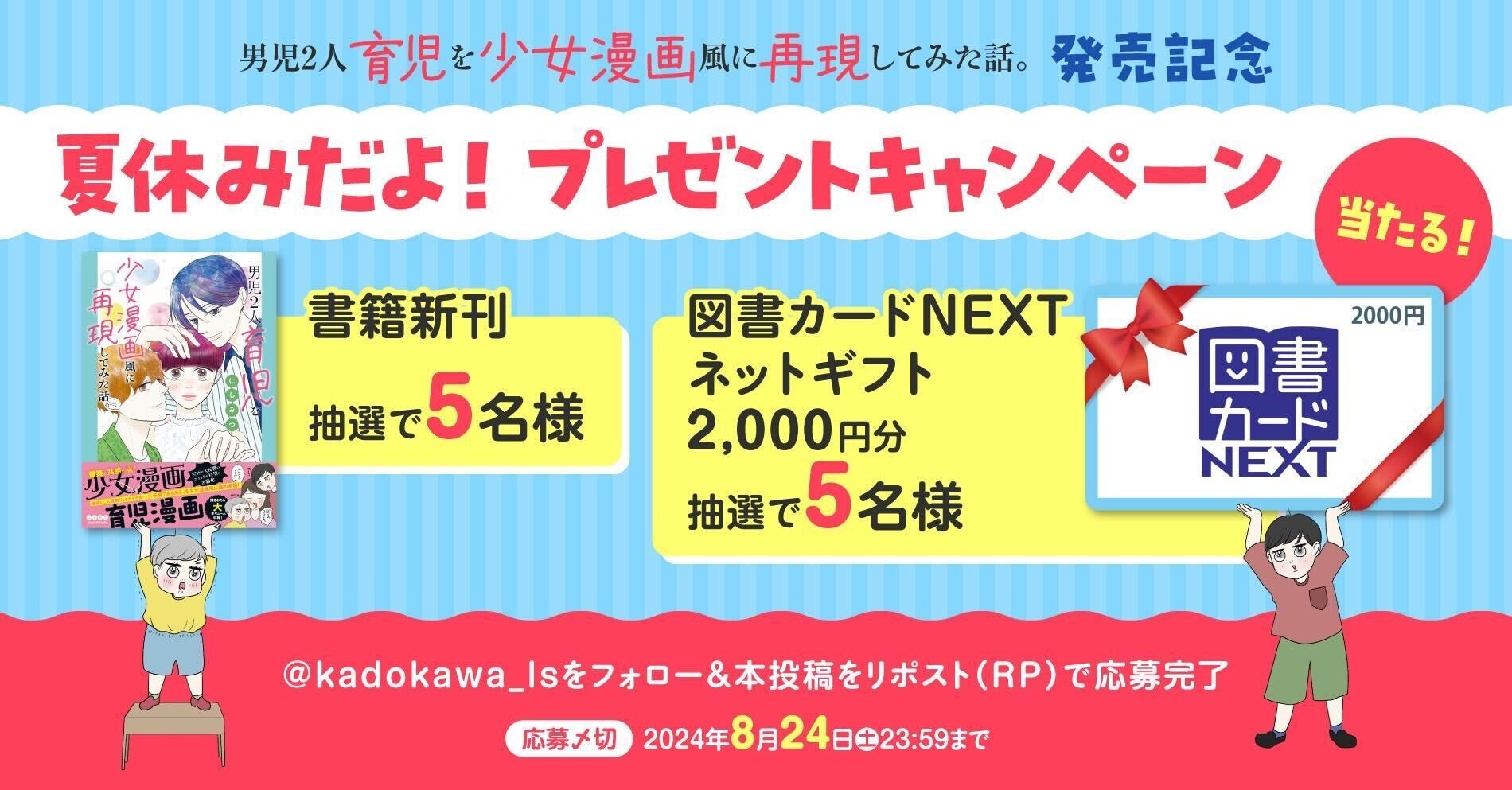 『男児2人育児を少女漫画風に再現してみた話。』発売記念「夏休みだよ! プレゼントキャンペーン」が本日2024年8月10日(土)より開始!