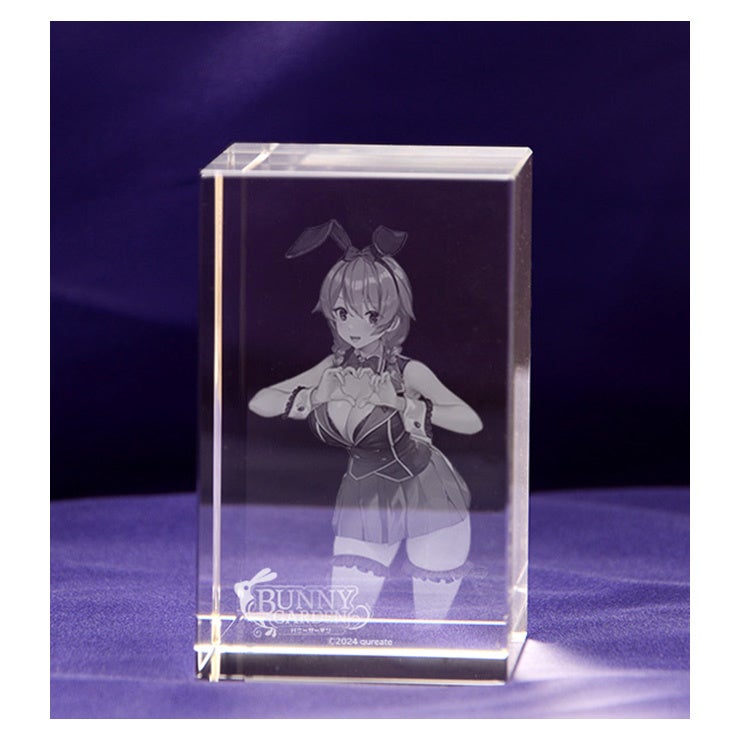「花奈」、「凜」、「美羽香」のイラストをそれぞれクリスタルキューブ内に3D立体レーザー彫刻で再現した3Dクリスタルです。