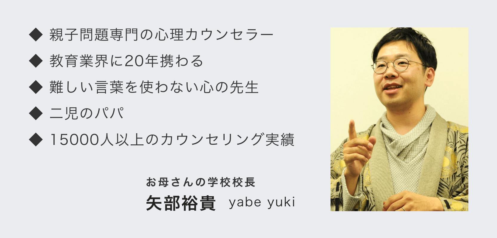 子育てに悩むお母さんのためのオンラインコミュニティ「お母さんの学校」の校長である矢部裕貴が、親子問題専門の心理カウンセラーとして15000人以上の親子をカウンセリングする中で得た知見をもとに執筆。