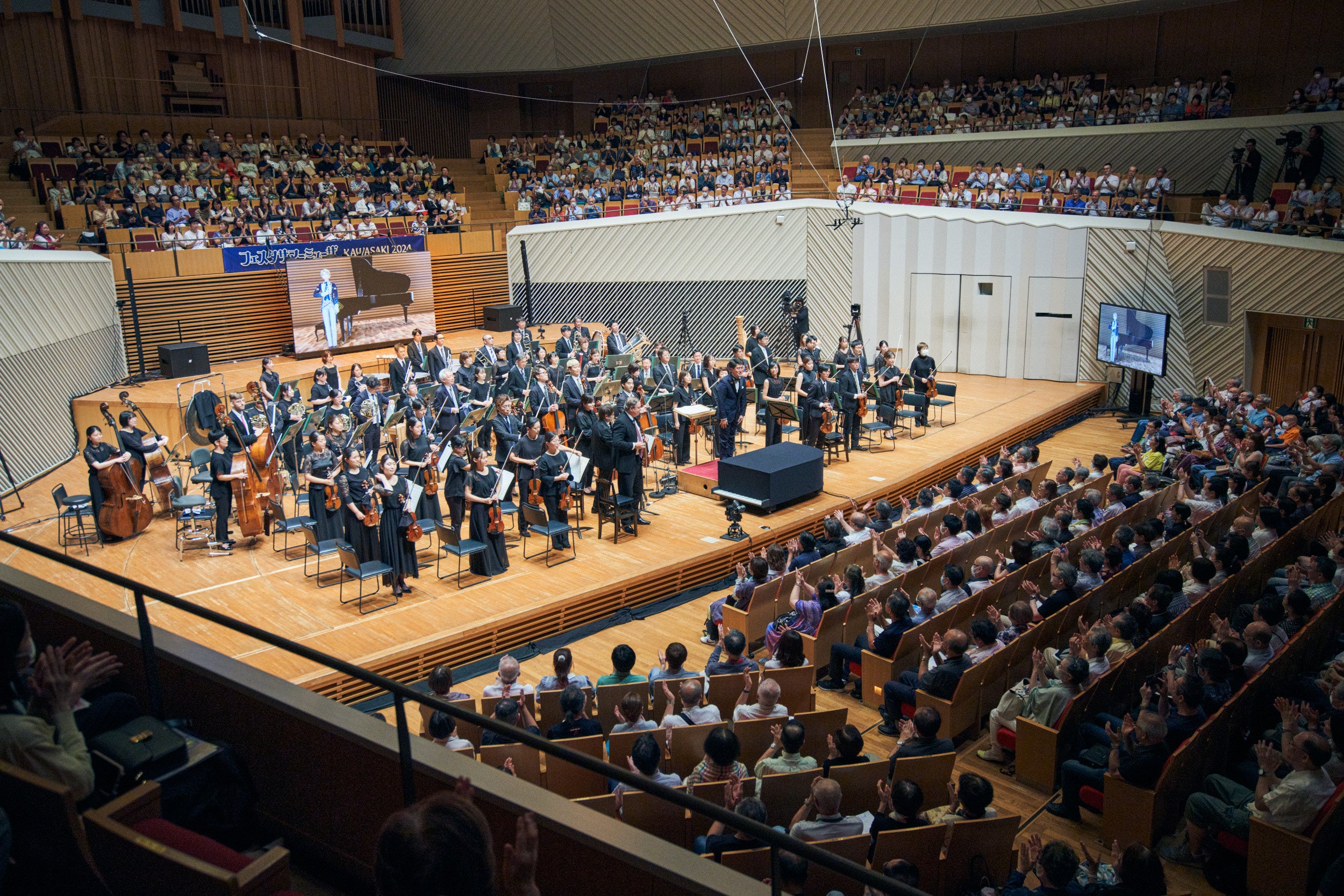 アンコールは山本直純作曲「好きです かわさき 愛の街」。川崎市民おなじみの曲が潤音ノクトのピアノに始まり、オーケストラが加わって、原田に促された聴衆の手拍子とともに、盛り上がりの中でフィナーレコンサートは幕を閉じた。
