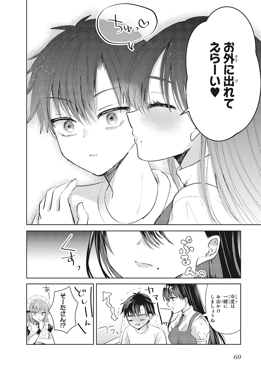 本作は、とある理由から家に引きこもっている少年・宗太と、家事代行としてお世話をしてくれる美しい女性・ハイネさんの甘々で少し不思議な日常を描くコメディ作品です。家事代行見習い高校生・おりこも加わり、宗太は二人からお世話されることになるのですが、その背景には大きな秘密が隠されていて……?