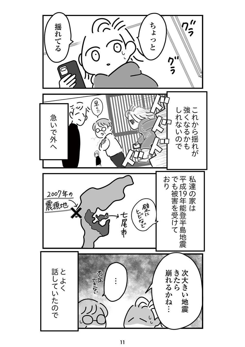 石川県七尾市在住の漫画家・まえだ永吉による、リアルな震災体験を描いたコミックエッセイ。