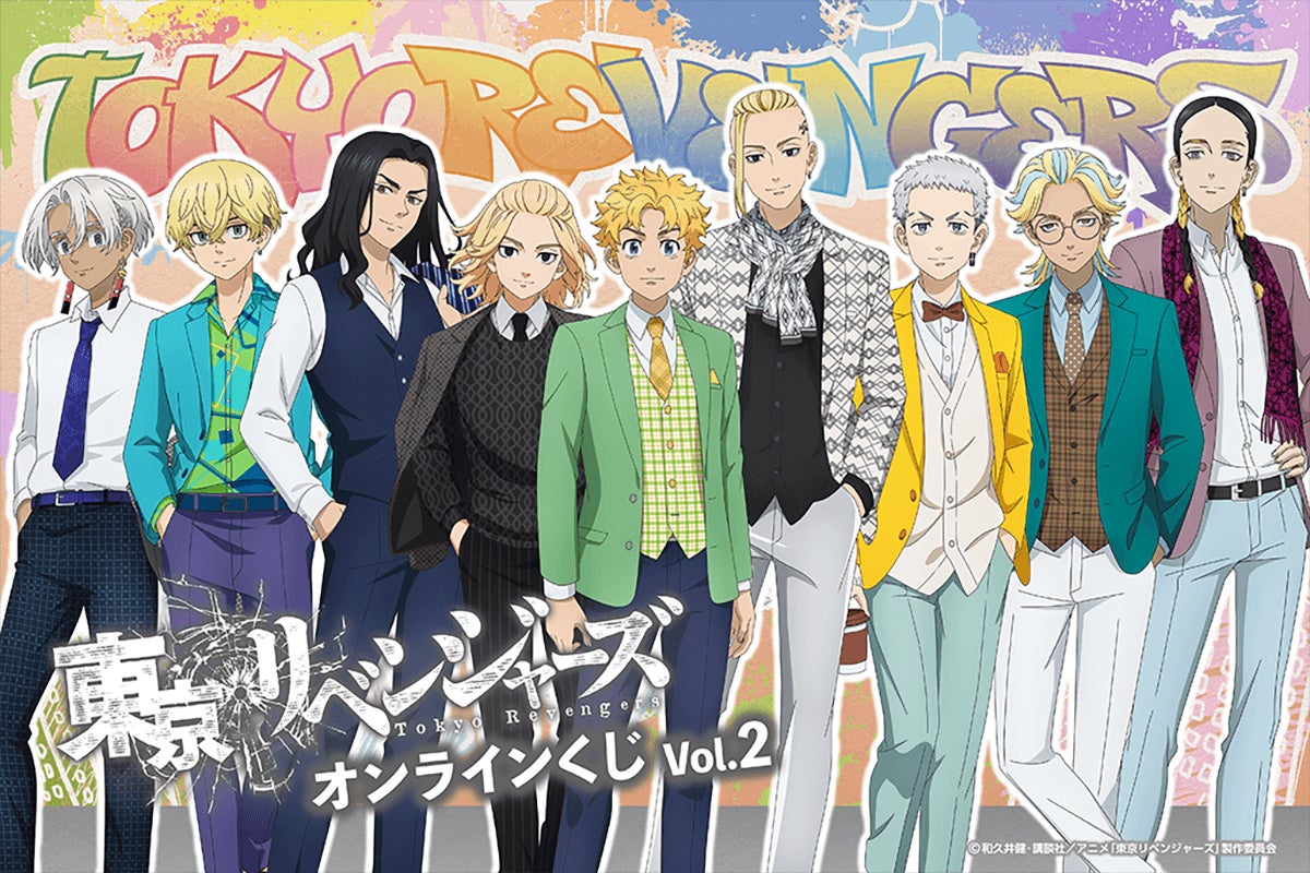 TVアニメ『東京リベンジャーズ』より、カラフルなスーツがお洒落な新規描き下ろしイラストを使用したオンラインくじが登場!