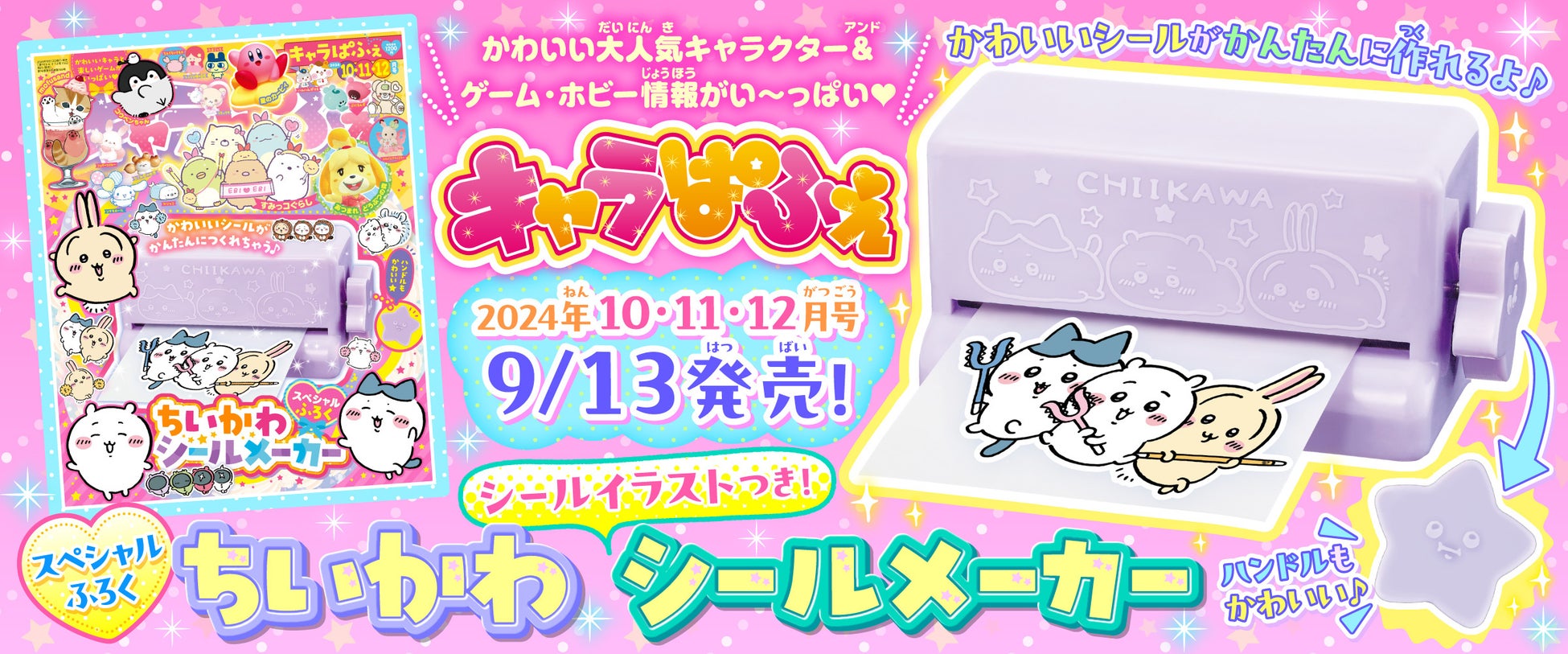 『キャラぱふぇ Vol.104 2024年10・11・12月号』のスペシャルふろくは、大人気『ちいかわ』の「シールメーカー」!