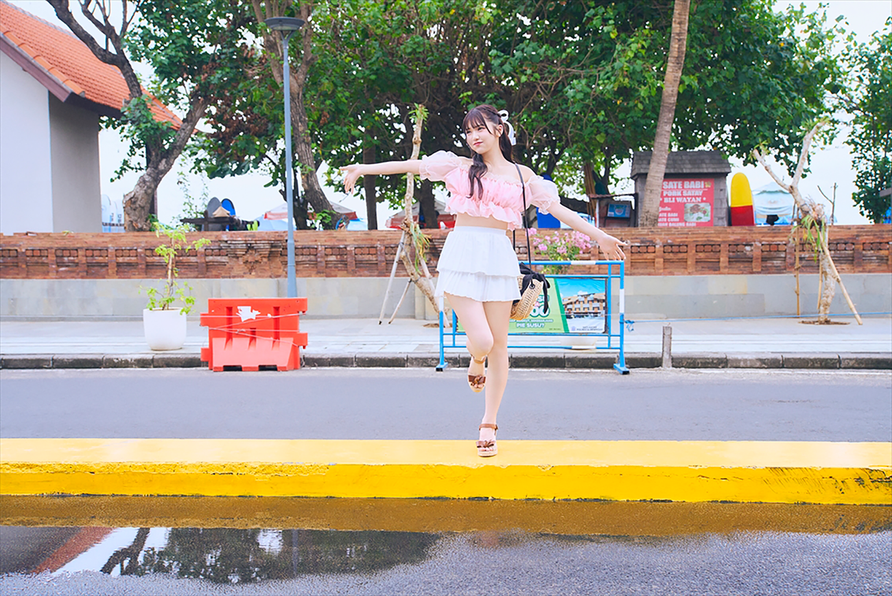 ロケは南国ムードいっぱいのインドネシア・バリにて行われました。つしもすっかり気に入ったという広大な海が広がるクタビーチで昼、夕方、夜と3回も撮影。特に夜のビーチでの撮影はつしが絶対に写真集に載せたいと希望したものです。他にもクタビーチ前に立つ熱帯植物が茂った巨大なリゾートホテルとジンバランからさらに南に位置するウルワツのヴィラを貸切って、素のつしの姿を写真に収めています。