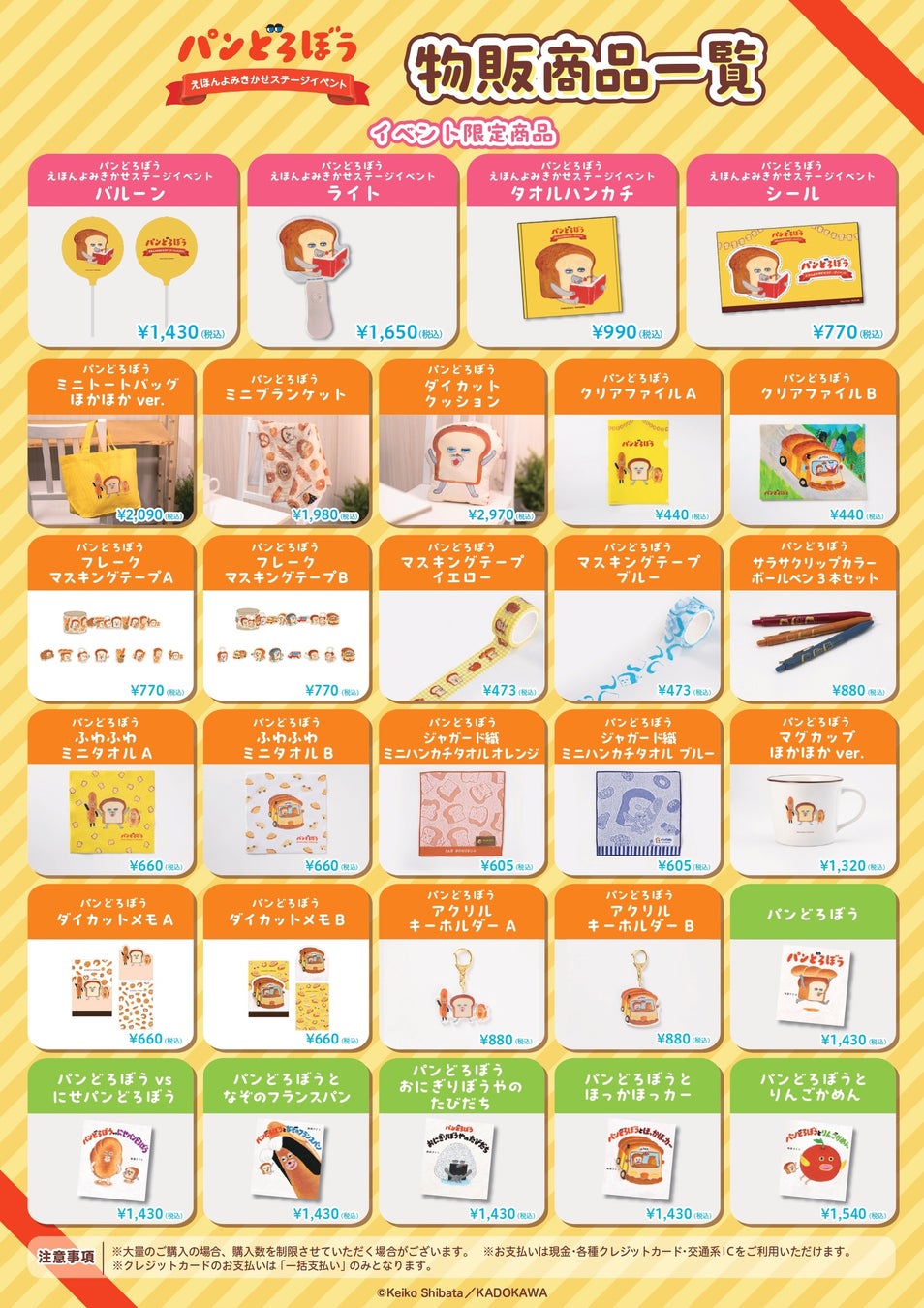 イベント描き下ろしイラストを使用した「イベント限定商品」のほか、最新刊「パンどろぼうとりんごかめん」の書籍も販売しております。ぜひお立ち寄りください。
