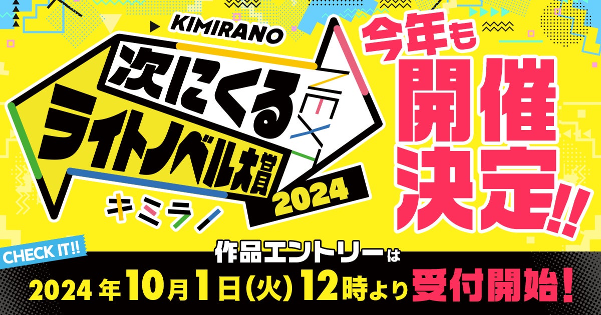 株式会社KADOKAWA(本社:東京都千代田区、取締役 代表執行役社長 CEO:夏野剛、以下KADOKAWA)が運営するライトノベル・新文芸のレコメンドサイト「キミラノ」は、「次にくるライトノベル大賞2024」の開催を決定いたしました。