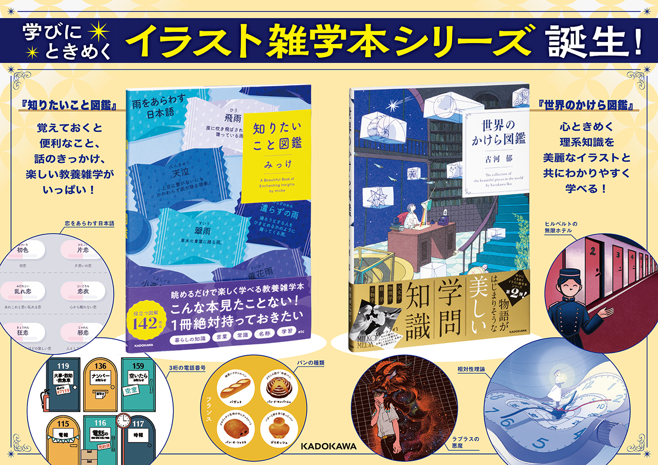 本書は、10万部を突破した『知りたいこと図鑑』に続く「学びにときめくイラスト雑学本」シリーズ第2弾として登場。気軽に楽しく雑学や学問に触れるきっかけとして、二作ともに多くの方にご好評いただいています。
