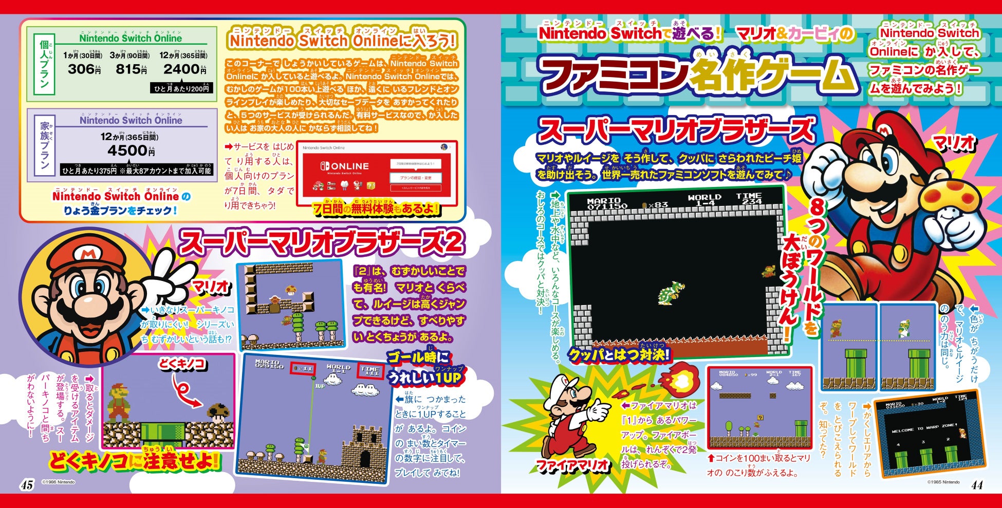 巻頭では、この秋大注目の『スーパー マリオパーティ ジャンボリー』と『マリオ&ルイージRPG ブラザーシップ!』、ふたつのゲームの新着情報をお届け! 『マリオカート8 デラックス』や『マインクラフト』など、人気ゲームの攻略情報もバッチリ掲載しています。また、Nintendo Switch Onlineに加入することで遊べる、ファミコン名作ゲーム特集も必見です。