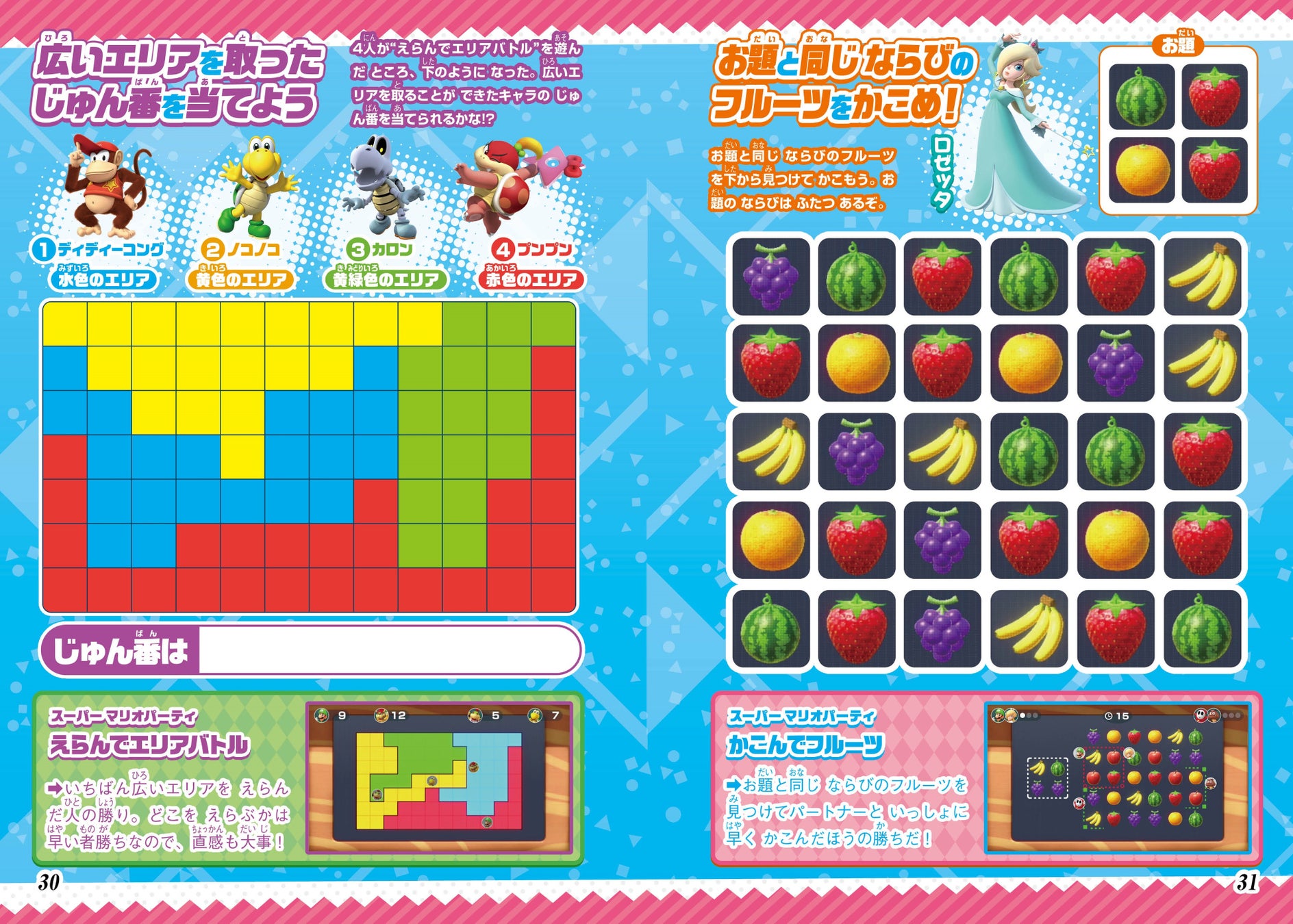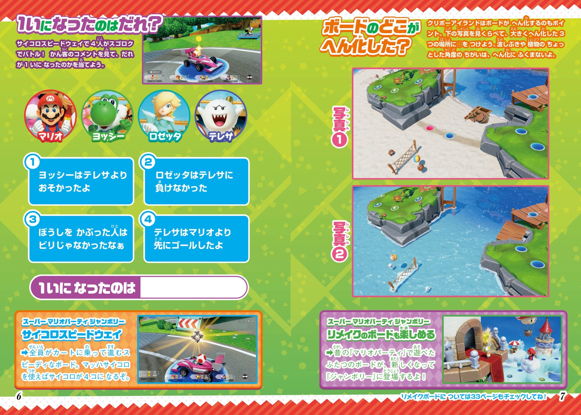 今回の別冊付録は、Nintendo Switchで遊べる『マリオパーティ』を題材にしたクイズブックです。初代『マリオパーティ』から、最新作の『スーパー マリオパーティ ジャンボリー』までの6作品のミニゲームをモチーフにした、迷路やクイズといった遊びがお楽しみいただけます。