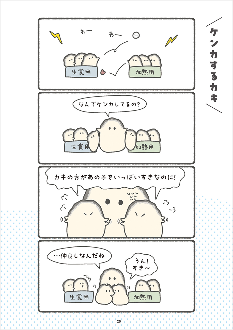 かわいいカキたちがわちゃわちゃ! いつでも仲良し!! SNSで累計総表示回数8000万回超えの「ぷりぷりカキ」がフルカラーコミックスに!