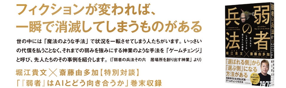 堀江貴文×斎藤由多加コンビによる最新書籍『弱者の兵法 折られてしまいそうな君たちへの遺言』10月2日(水)発売!