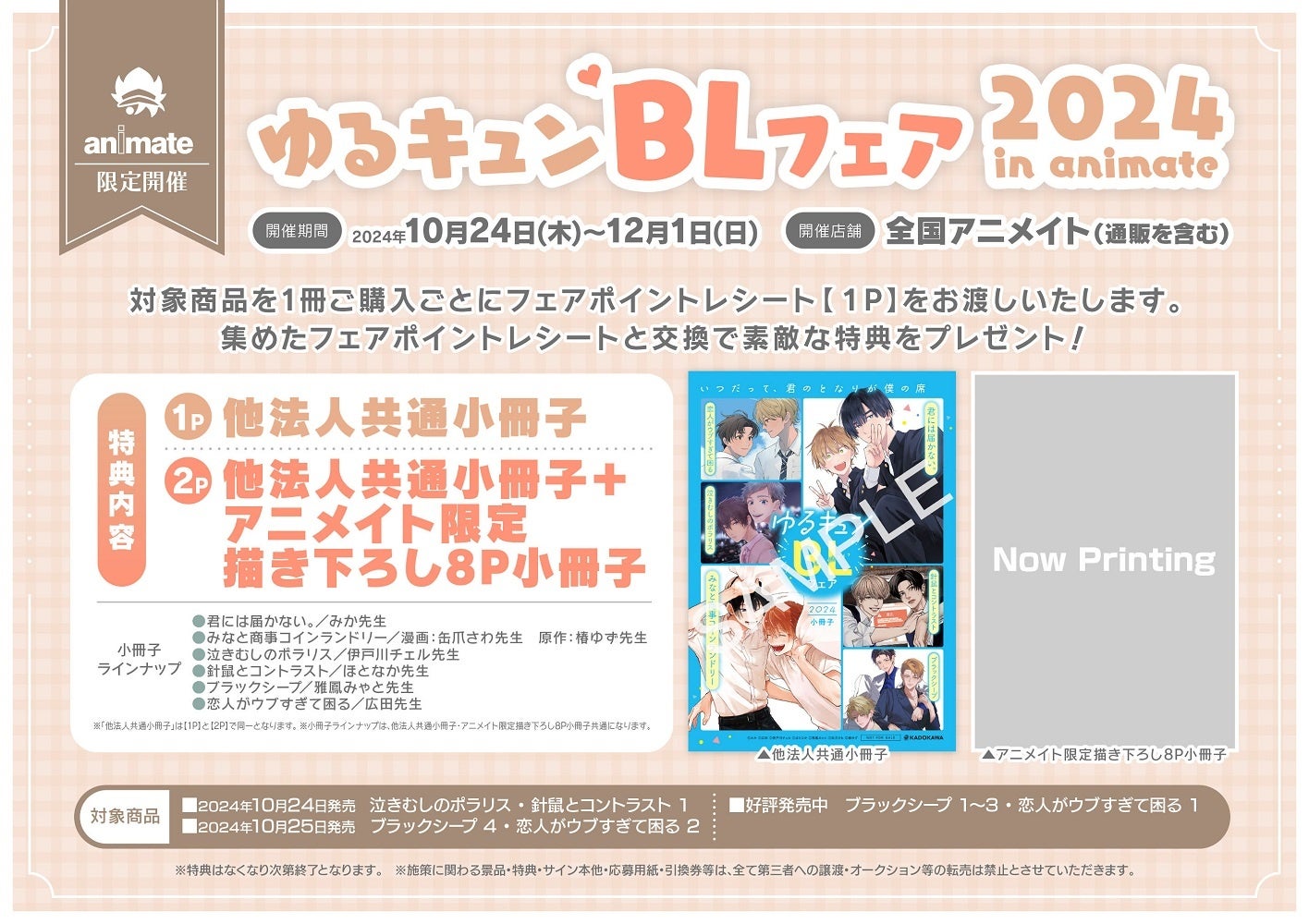 対象の書店で対象のコミックスを購入された方に、豪華執筆陣によるゆるキュンBL作品の描き下ろし小冊子(12ページ)をプレゼントいたします。