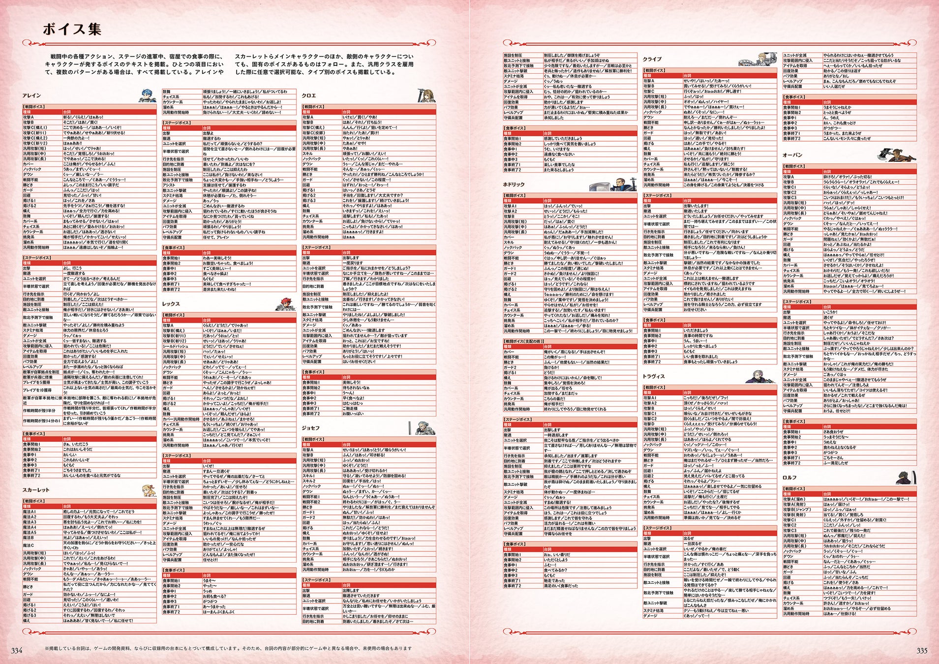 「バトル・進軍ボイス」「贈り物の反応」「親密度会話」「契約の儀式」「ラストバトル」など、数々の台詞テキストを大ボリュームで掲載。