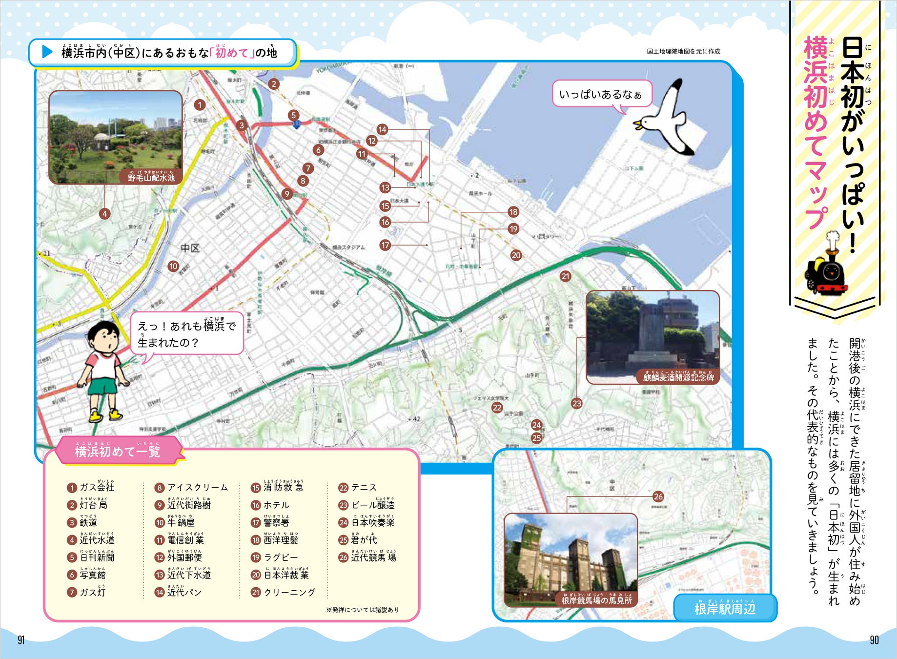 日本初がいっぱいの「横浜初めてマップ」や、「神奈川県のお祭りカレンダー」など、おでかけガイドとしても使える情報が満載です。
