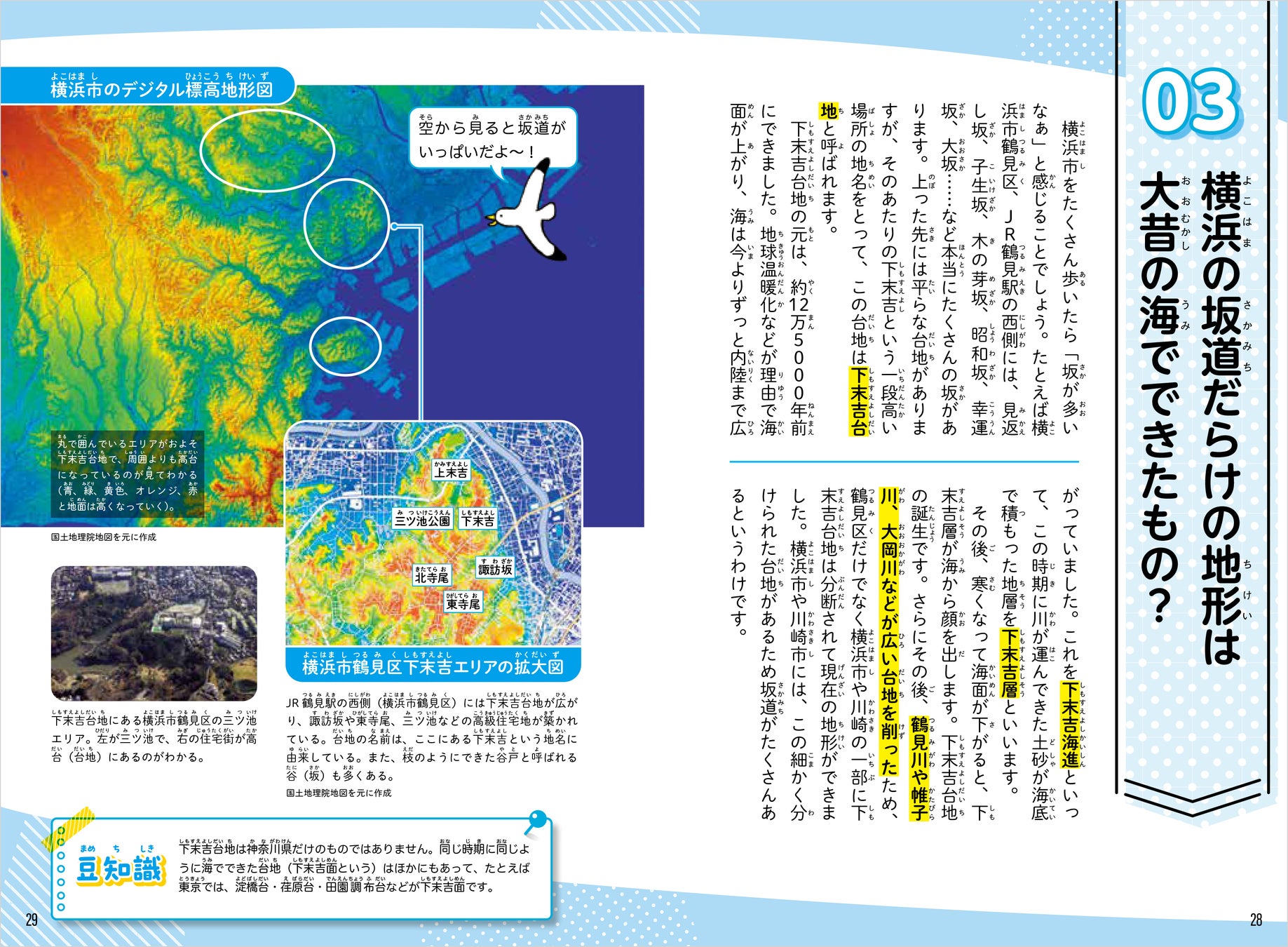 また、本書は地形の特徴がよく分かる色別標高図も多用し、土地の凸凹(でこぼこ)を直感的に感じ取れる工夫をしています。子どもたちが大好きなユニークなランキングでは、データから神奈川を読み解きます。