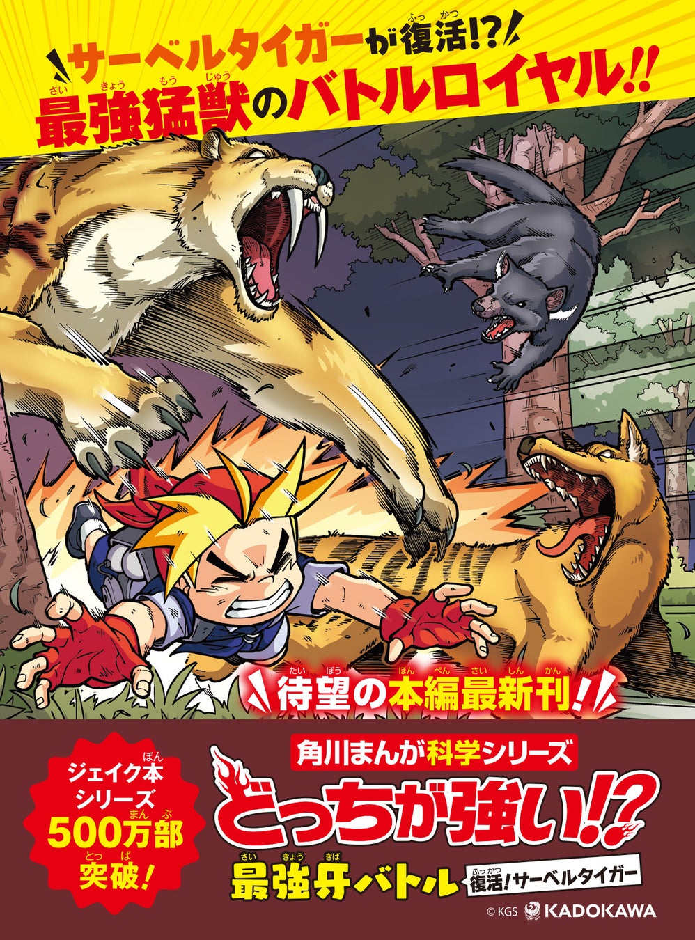 株式会社KADOKAWA(本社:東京都千代田区、取締役 代表執行役社長 CEO:夏野剛)は、角川まんが科学シリーズ『どっちが強い!? 最強牙バトル 復活!サーベルタイガー』(監修:今泉忠明、ストーリー:ヴェズィル、まんが:ブラックインクチーム)を2024年11月7日(木)に発売しました。