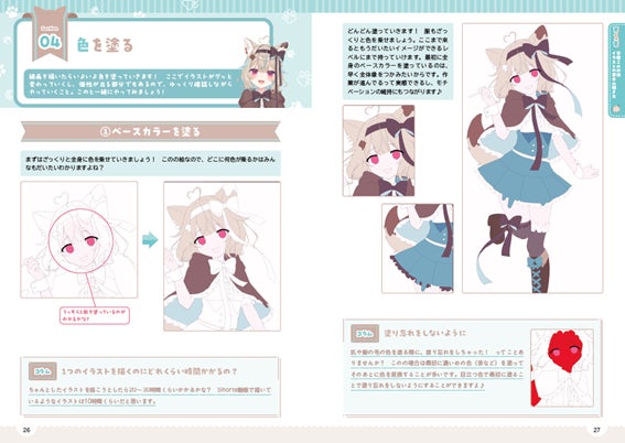 本書籍には、普段のお絵描き配信などでは語りつくせないイラストのこだわりや、イラストが魅力的になるための解説をたっぷり収録しています。